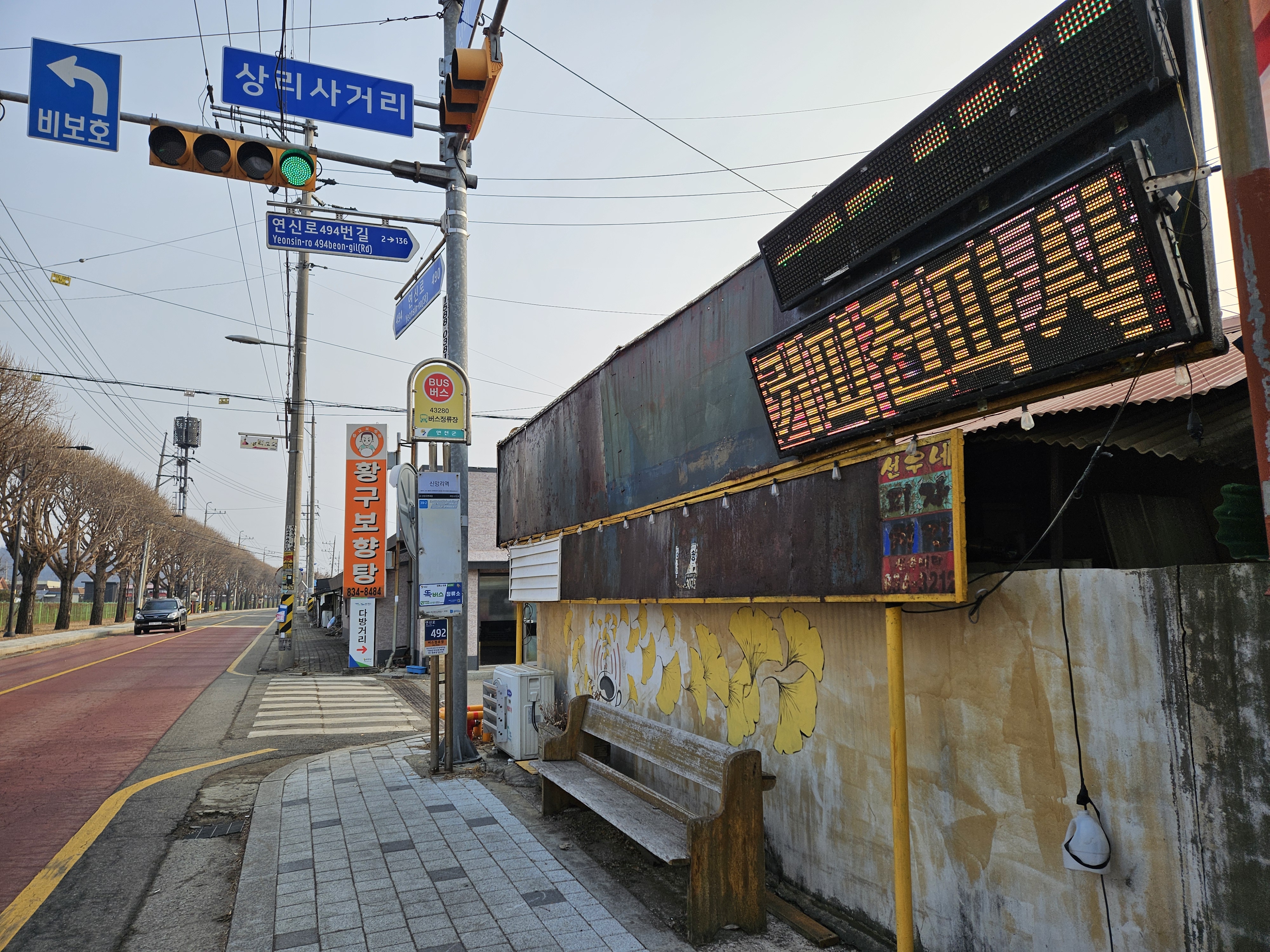 | 이용 후기 | 1. 신망리역에 자차로 이동 주차하여 연천역 출발해서 신망리역 도착(8:37예정)하는 버스가 약 3분 정도 지체하였고, 버스로 선곡리마을회관으로 이동하여(13분 소요), 군남댐 12코스 시점 퍼걸러까지 (12분 소요) 도보로 이동하였습니다. 버스를 이용해본 결과 매우 잘 연결이 되어서 1호선 연천역을 이용해도 좋겠다는 생각이 들었습니다. 2. 오늘의 날씨는 바람이 많이 불어 체감 온도가 약간 추워 영하로 느껴졌습니다. 3. 망곡산 둘레길과 연결(12-28 지주형안내판)해서 상리약수터까지 가는 길 곳곳에 눈이 아직 녹지 않았습니다 4. 오늘 군남댐에서 신망리 구간은 12코스를 두 구간으로 나누어 걷는 첫 번째 길이지만, 대체적으로 하룻 만에 걸을 수 있는 코스로 매우 무난하며, 다만 군남댐에서 어울림센터 구간은 오르막이 좀 있지만 여유롭게 걷는다면 그다지 어렵지 않게 걸을 수 있을 것 같습니다. 5. 1호선전철 연천역을 이용하여 시간을 잘 활용한다면 서울에서도 자차 없이 충분히 대중교통으로 다녀올 수 있다고 생각합니다. 신망리역 건너편 55번 버스 탑승 정류장입니다. 멀리 임진강과 개안마루와 오른 쪽에 조선시대 대학자이신 허목선생님이 자주 들렀던 웅연이 보입니다. 간혹 아직 녹지 않은 눈들이 보입니다. 2027년이면 경원선 수소전기동차 실증 R&D사업이 완료되어, 연천역-백마역 구간이 완공되어서 평화누리길 12코스가 엄청 활성화되길 기원해 봅니다. |