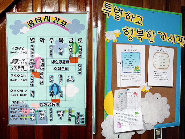 한참 사춘기 나이의 학생들이 자기만의 공간과 시간을 갖고 싶어 하지 않을까 하는 의문이 들었다. 그러나 개인별 성향을 일일이 다 맞추어 해결하기는 어려워도 또래별 그룹에서 이러한 부분을 조금씩 해결하고 있었다. 특별히 가정의 보호와 관심이 부족했던 아이들의 특성상 개인적 시간과 공간 보다는 아이들과 함께하는 시간을 매우 좋아하고 있어 너무 집에 안 가려고 하는 것이 오히려 문제라고 선생님들은 말씀하셨다.