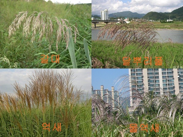 흔히 갈대는 하천 하류및 바닷가에.. 달뿌리풀은 상류에.. 억새는 들과 산으로...