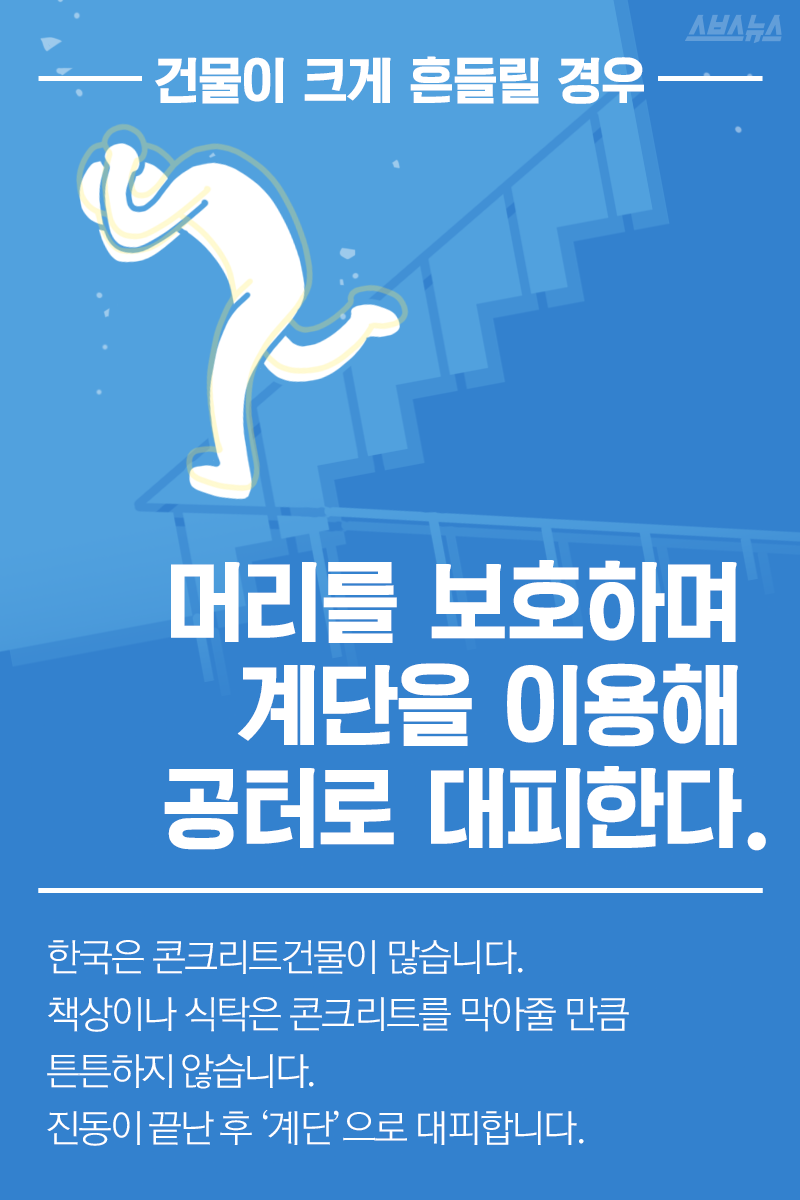 '책상이나 식탁 아래로 피하라' 지진 대응법 하면 가장 생각나는 말입니다. 그런데, 콘크리트 건물이 많은 우리나라에는 적합하지 않은 대피 요령입니다. 그래서 스브스 뉴스가 우리나라에 적합한 대응 매뉴얼을 정리했습니다.