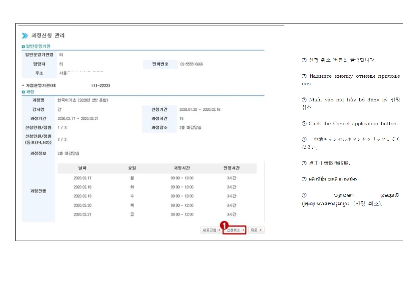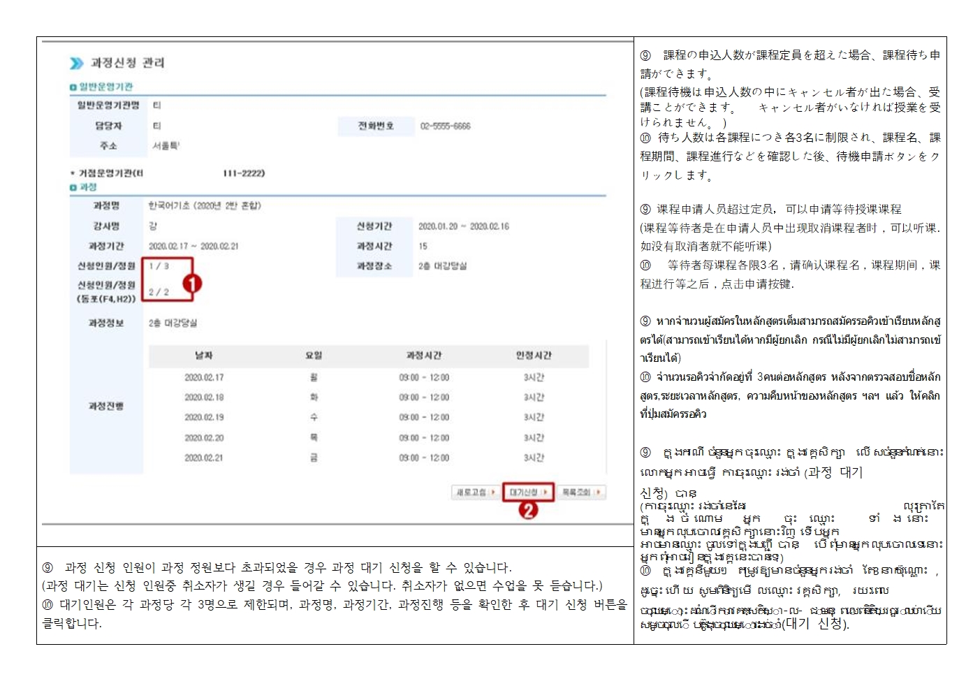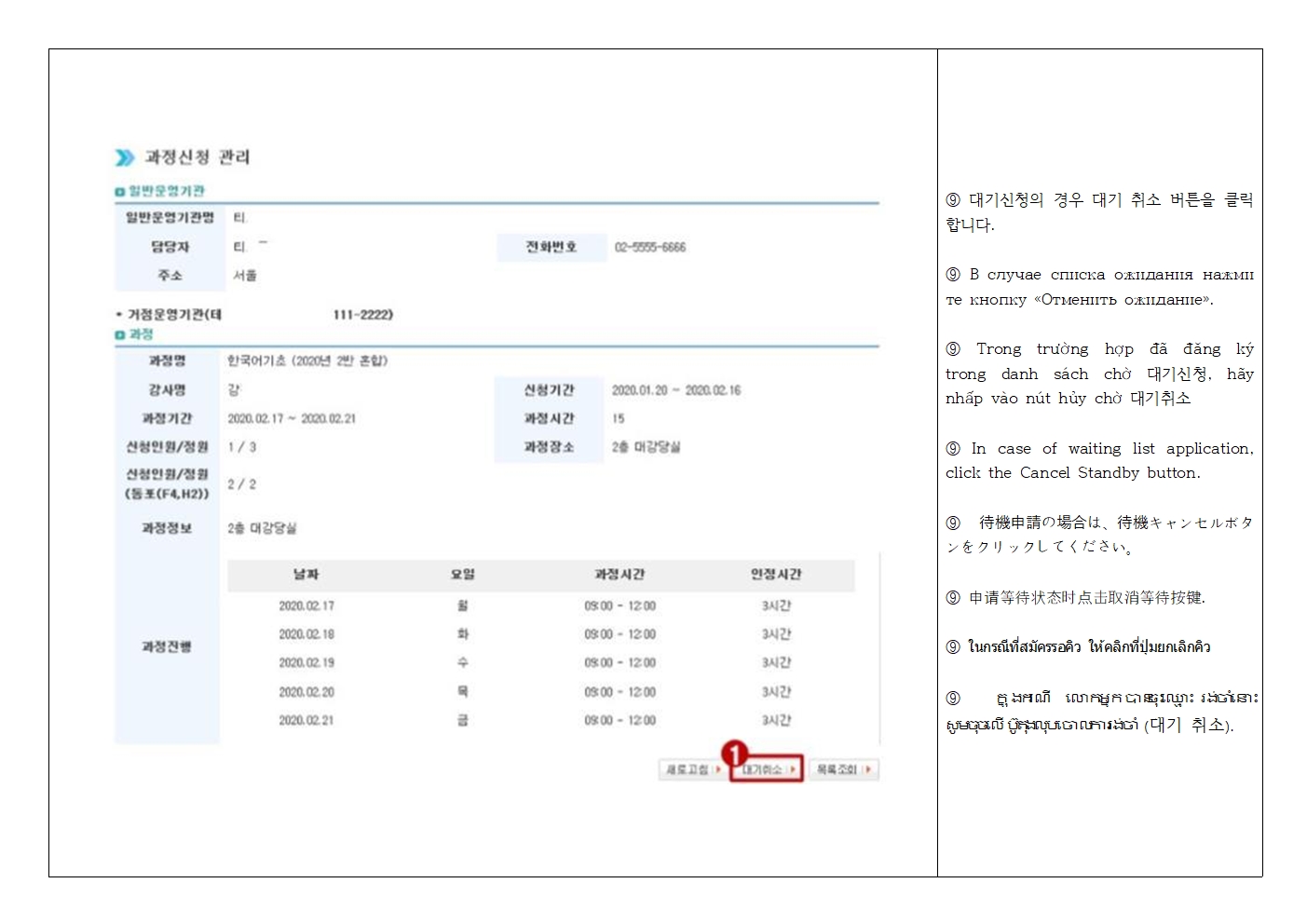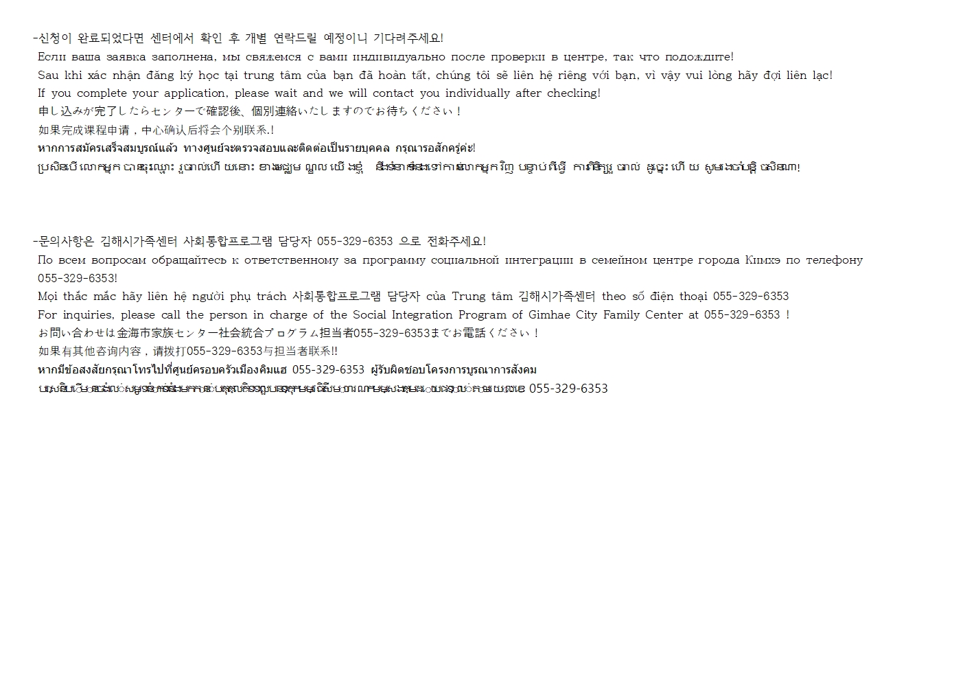 신청 당일에는 응대가 어려우니 미리 확인하신 후 문의사항 연락주세요.