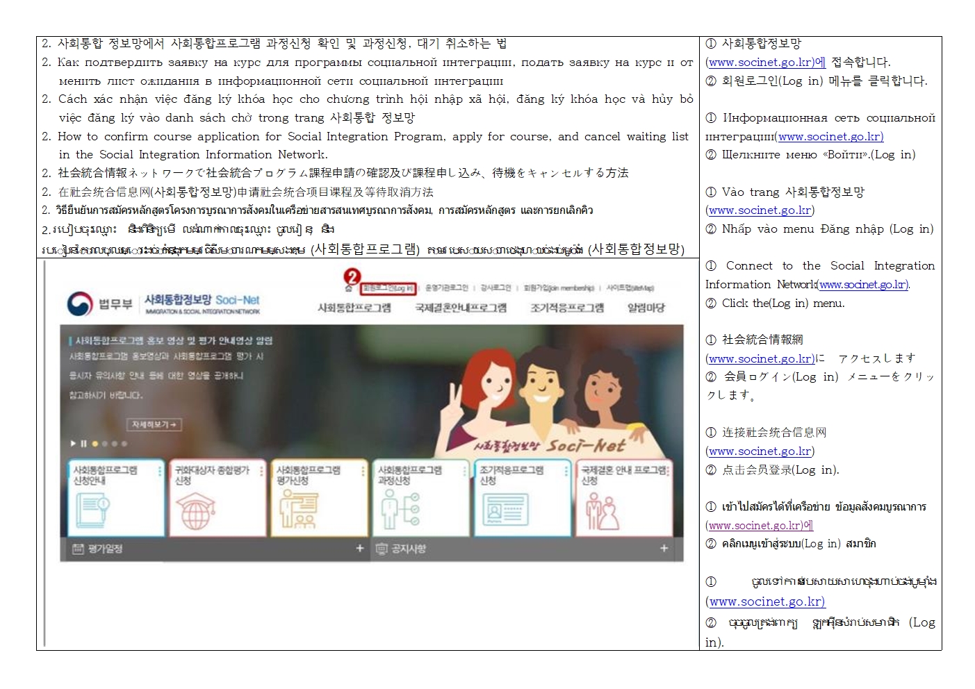 -대한민국에 체류하는 이민자가 우리 사회 구성원으로 적응 및 자립하는데 필요한 기본소양(한국어와 한국문화, 한국사회이해)을