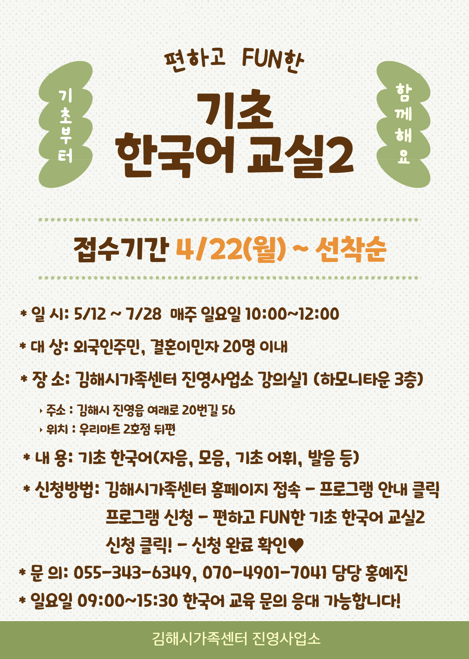 *Place: Gimhea-si Family center JinYeong Branch Classroom 1 (Harmony Town 3rd floor)