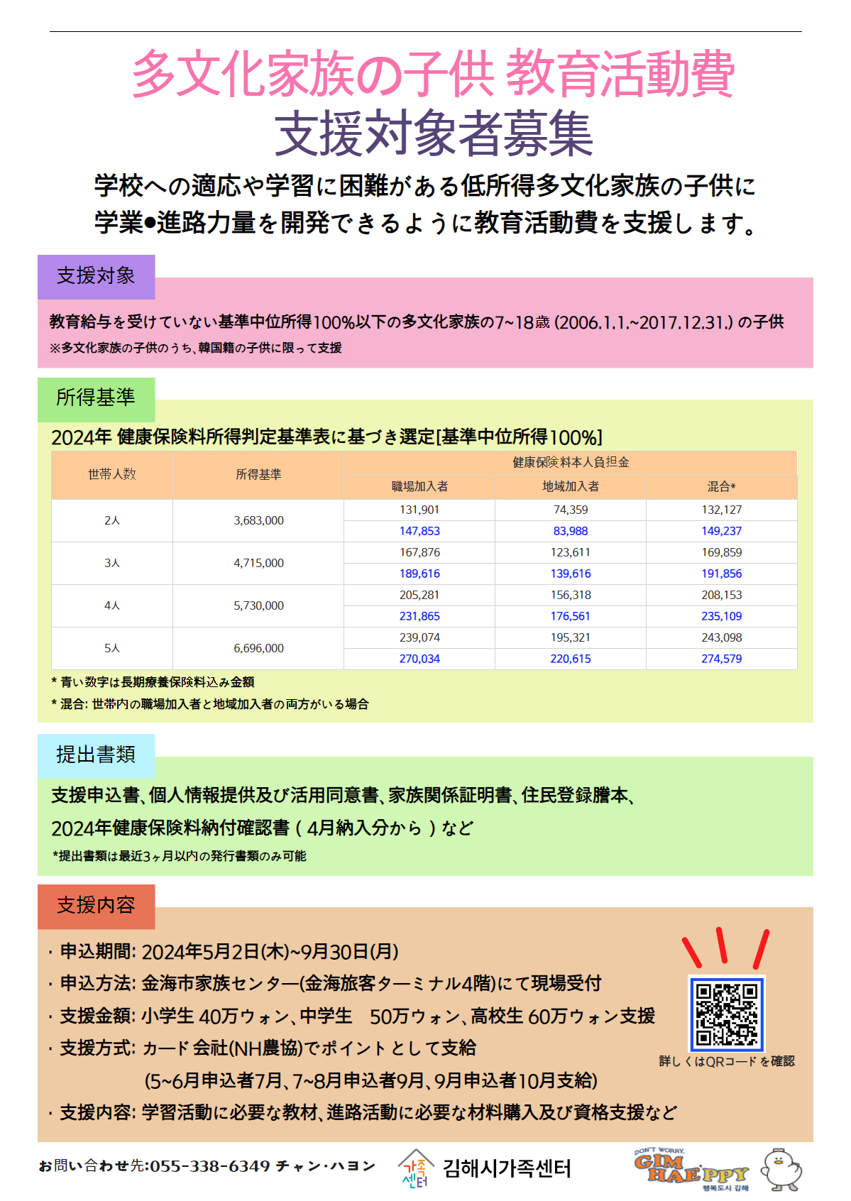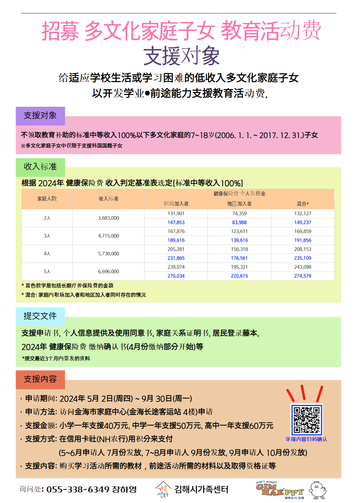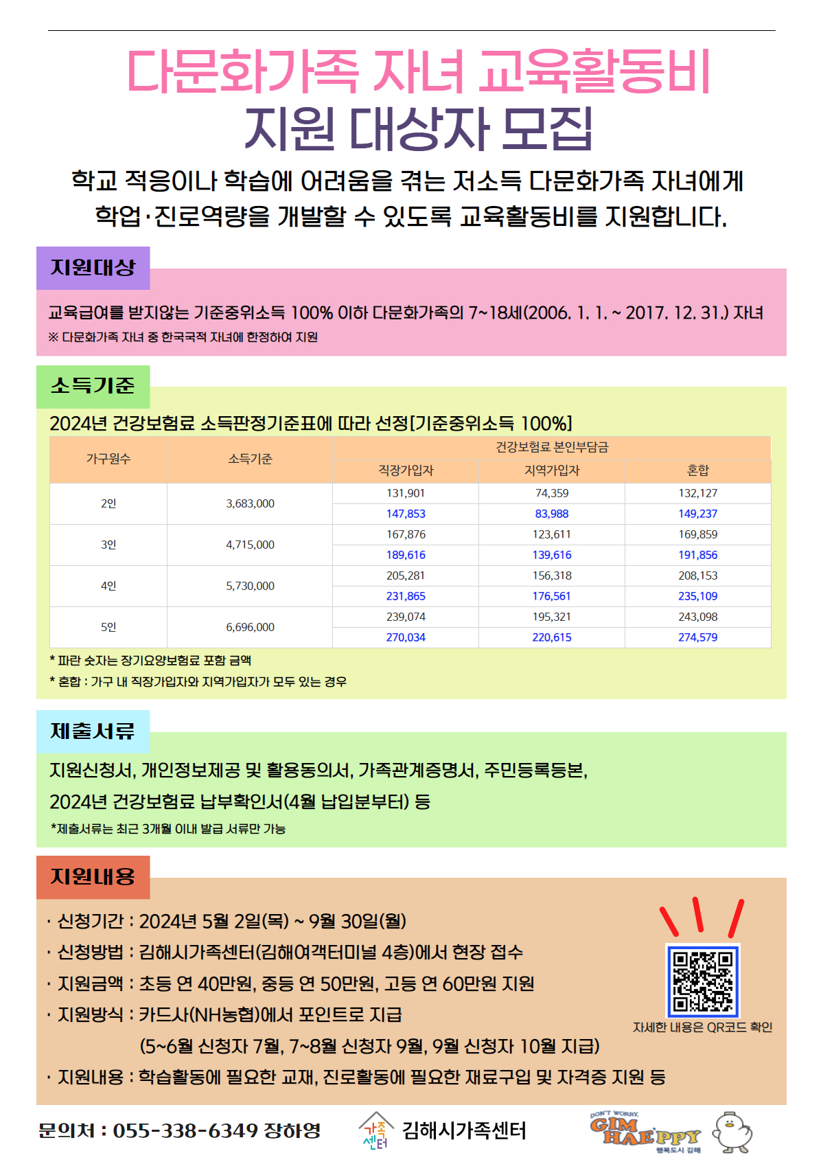 해당자는 김해시가족센터로 방문하셔서 신청 바랍니다.