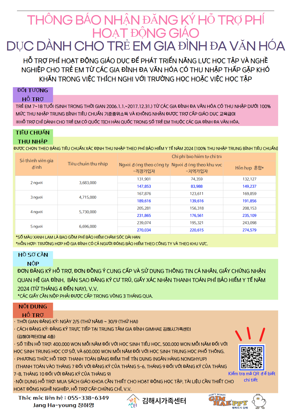 올해 새롭게 시작하는 ‘다문화가족 자녀 교육활동비 지원사업’에 대해 안내드리오니