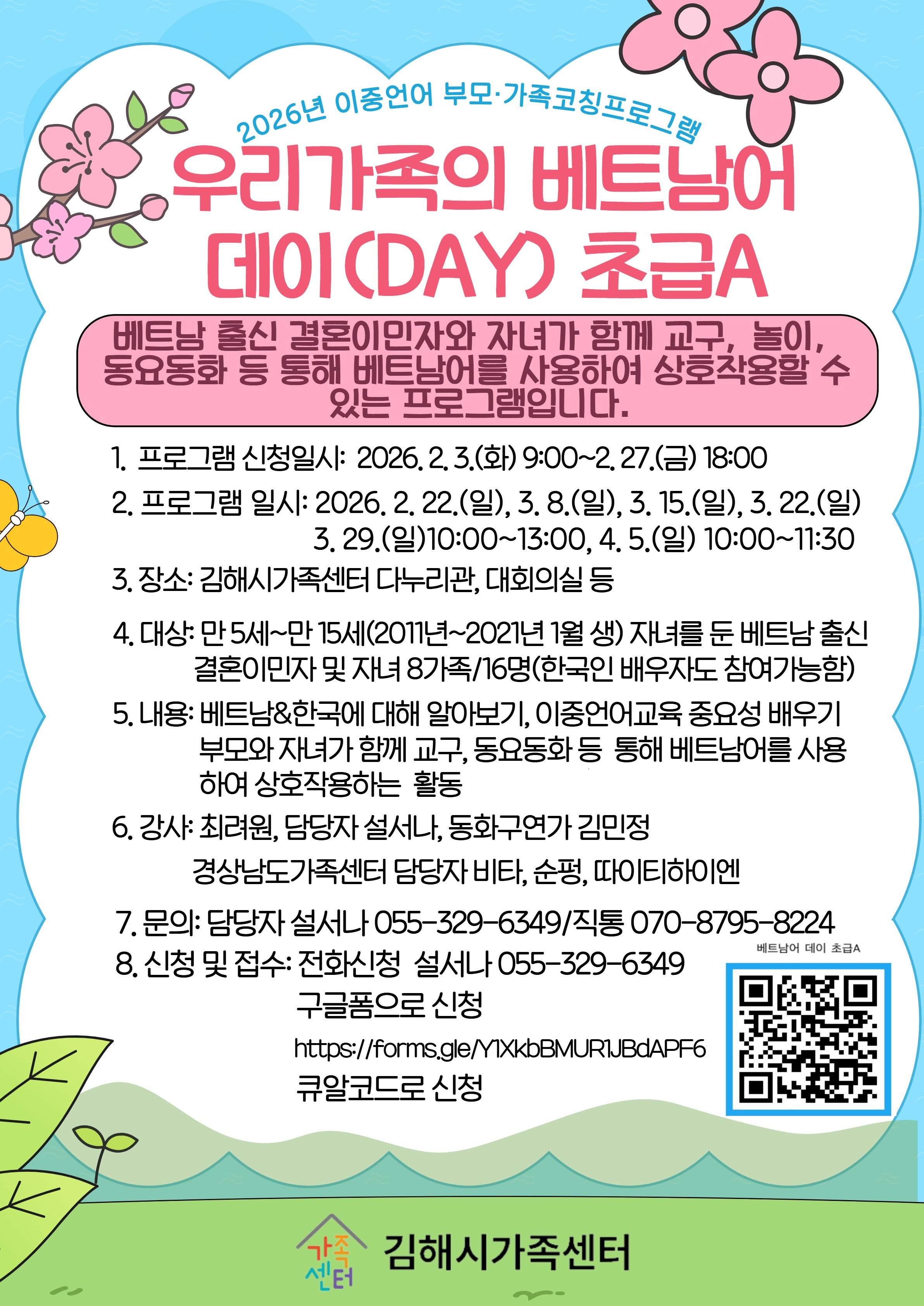 2026년 우리가족의 베트남어 데이(DAY) (초급A) 모집안내
