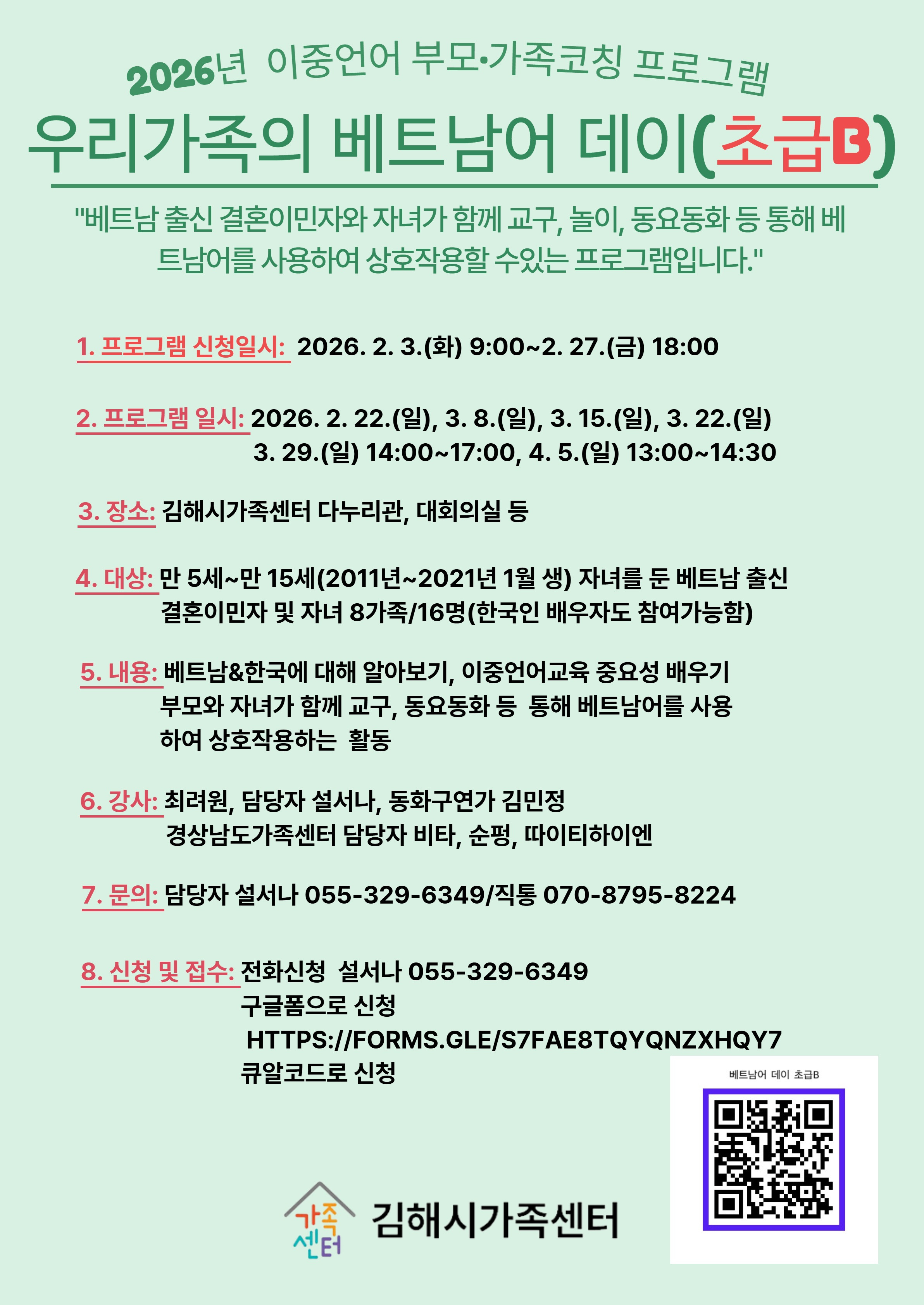 2026년 우리가족의 베트남어 데이(DAY) (초급B) 모집안내
