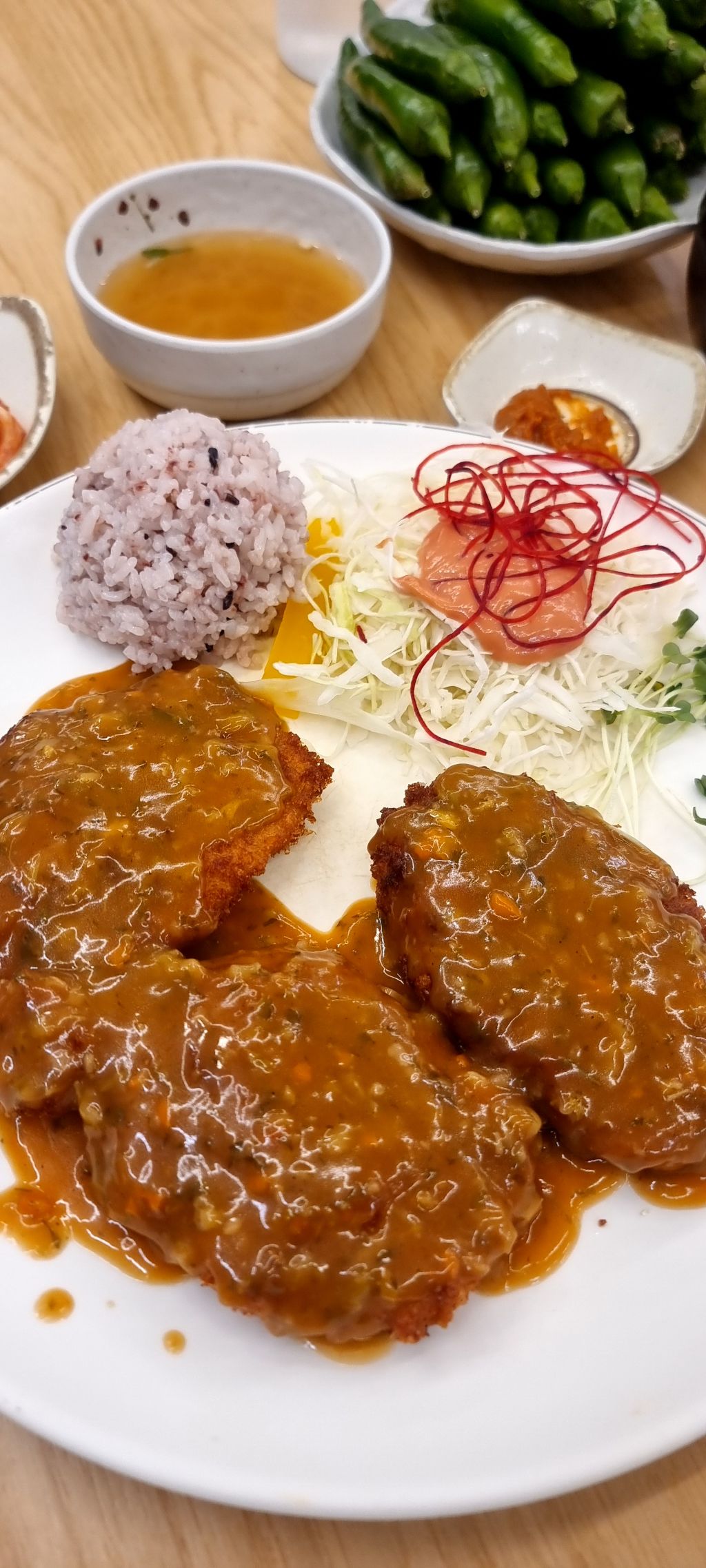그리고 그와 함께 테이블 위에 수북히 쌓인 오이고추의 아삭한 식감은, 돈까스 특유의 느끼함을 상쇄시켜줘 한층 더 풍성한 맛의 조화를 이룹니다. 특히 입맛을 잃어버렸을 때 찾아가면, 곧바로 입맛을 되살려주는 힘이 있는 곳입니다.
