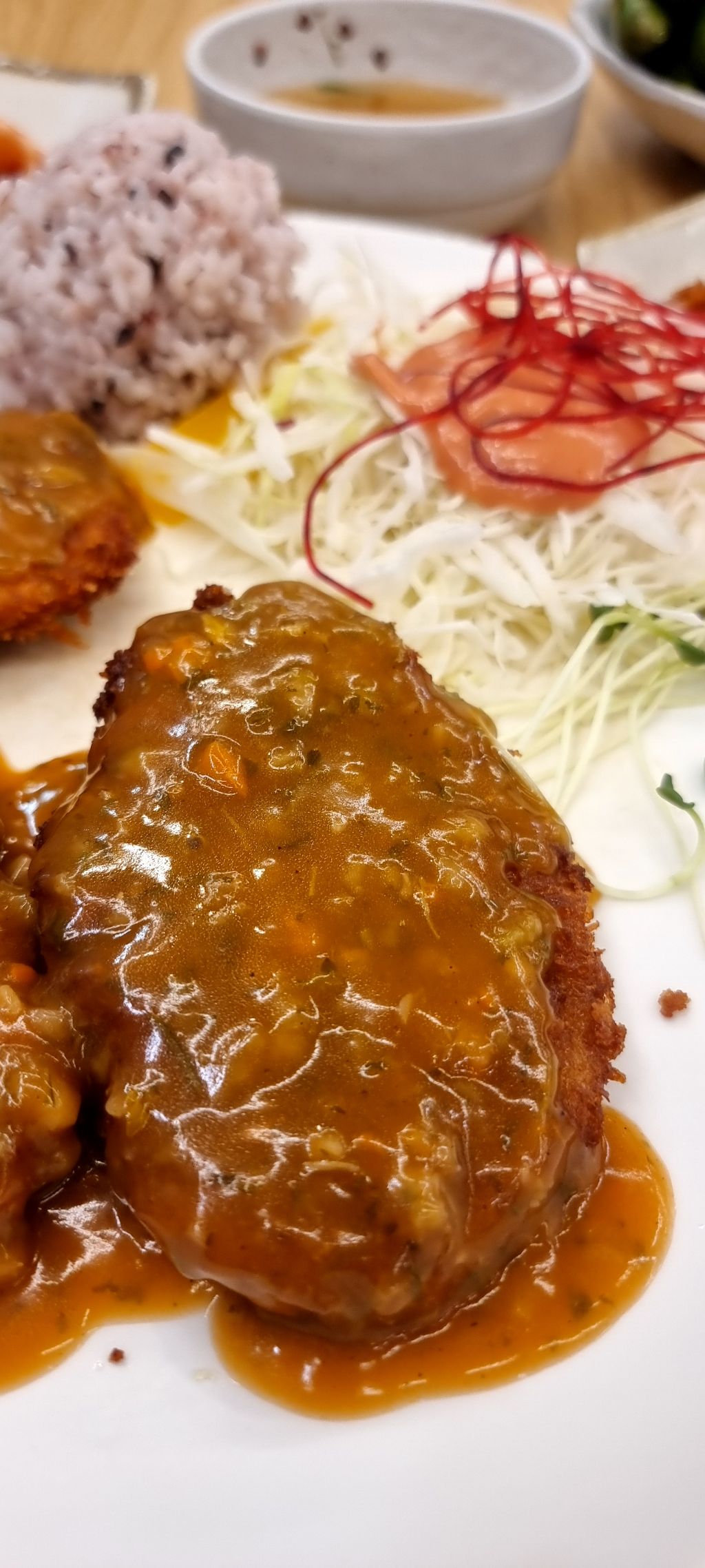 돈까스, 그 자체가 주는 포만감과 만족감은 말로 표현하기 어렵습니다. 수제 소스와 불맛이 은은하게 배어 있는 듯한 돈까스는 바삭한 튀김 옷 아래에 감춰진 육즙으로 인해 첫 한입부터 저를 사로잡습니다.