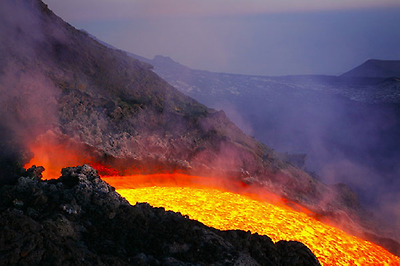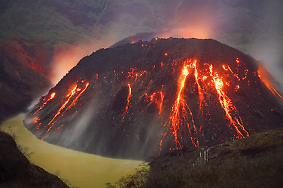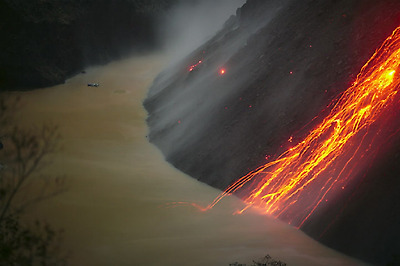 화산폭발로 발생하는 빛, 흐르는 용암의 모습이 마치 화려한 향연을 연상케 하는군요.