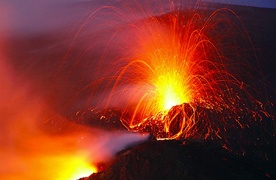 Italy Stromboli 활화산 용암분출 모습