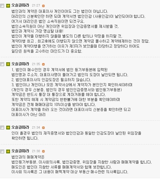 법인과 매매계약 체결시 매도인 법인에서