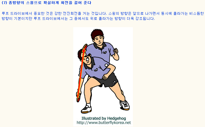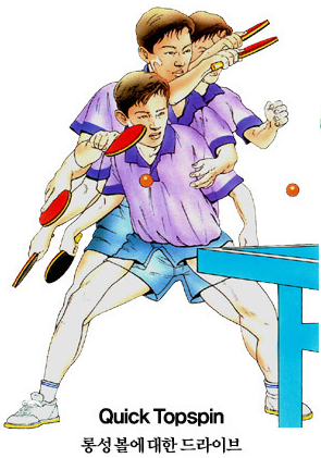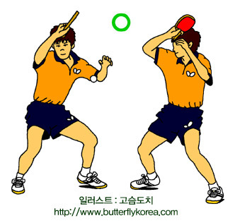 상대방코트에 안전하게 떨어뜨리는 공격적 타법으로