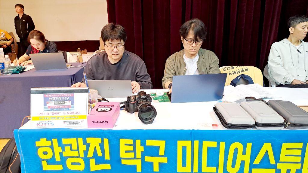 본 대회 공식후원사인 "타그로"사가 월간탁구의 광고 스폰서이기때문에 특별히 취재하러 오셨다고 합니다.