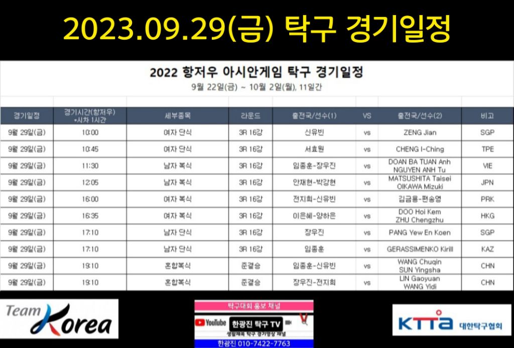 먼저 대한민국 탁구단의 훌륭한 성과에 감사드리며, 아울러 선수들의 투혼과 뜨거운 함성과 환희를 추억하고자