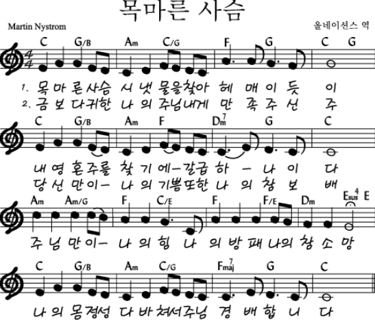 목마른 사슴 시냇물을 찾아 헤매이듯이