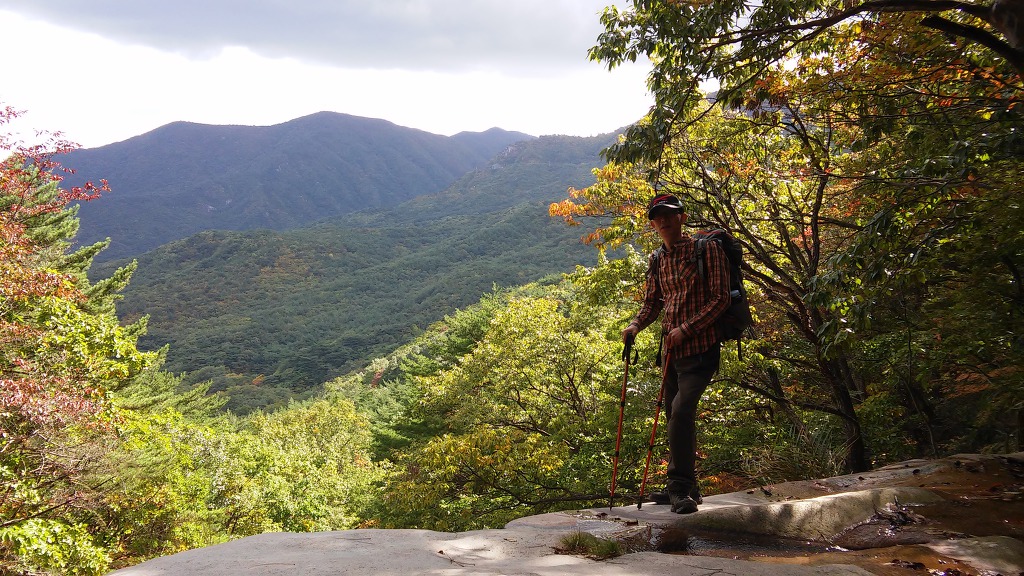 불당폭포 상단에서. 뒤로 멀리 가지산 입석대가보인다.