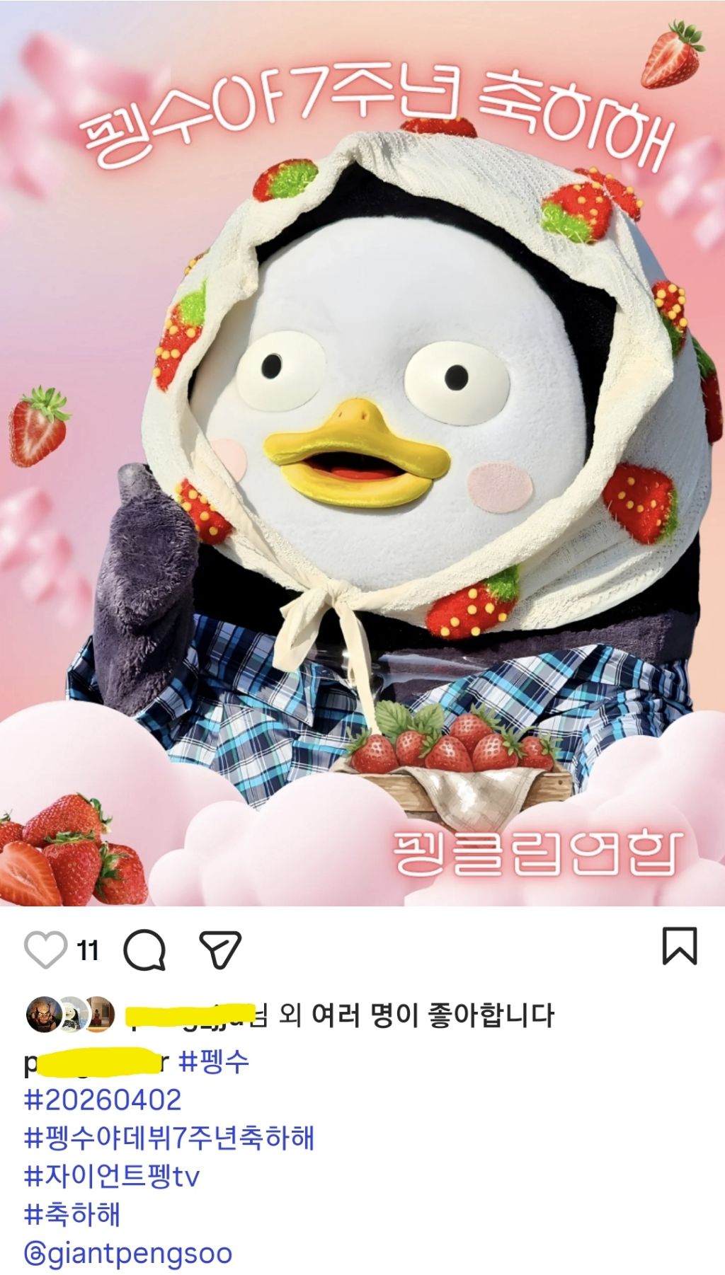 총공인증 작성자gpenglover|작성시간26.04.02|조회수22 목록 댓글 9 글자크기 작게가 글자크기 크게가 펭수야 데뷔7주년 축하해 🎉 다음검색 현재 게시글 추가 기능 열기 북마크 공유하기 신고 센터로 신고 댓글 댓글 9 댓글쓰기 답글쓰기 댓글 리스트 작성자kmj펭펭 | 작성시간 26.04.02 작성자아르미이 | 작성시간 26.04.02 작성자에이스펭 | 작성시간 26.04.02 작성자보미써니펭펭 | 작성시간 26.04.02 작성자펭수펭하 | 작성시간 26.04.02 댓글 전체보기
