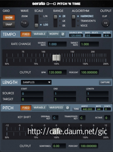 Pitch 'n Time Pro offers time compression and expansion from a ratio of 1/8 speed through to 8 x speed independent of pitch, and pitch shifting of up to 36 semitones independent of tempo.