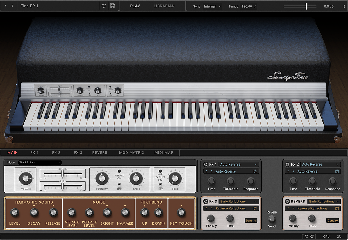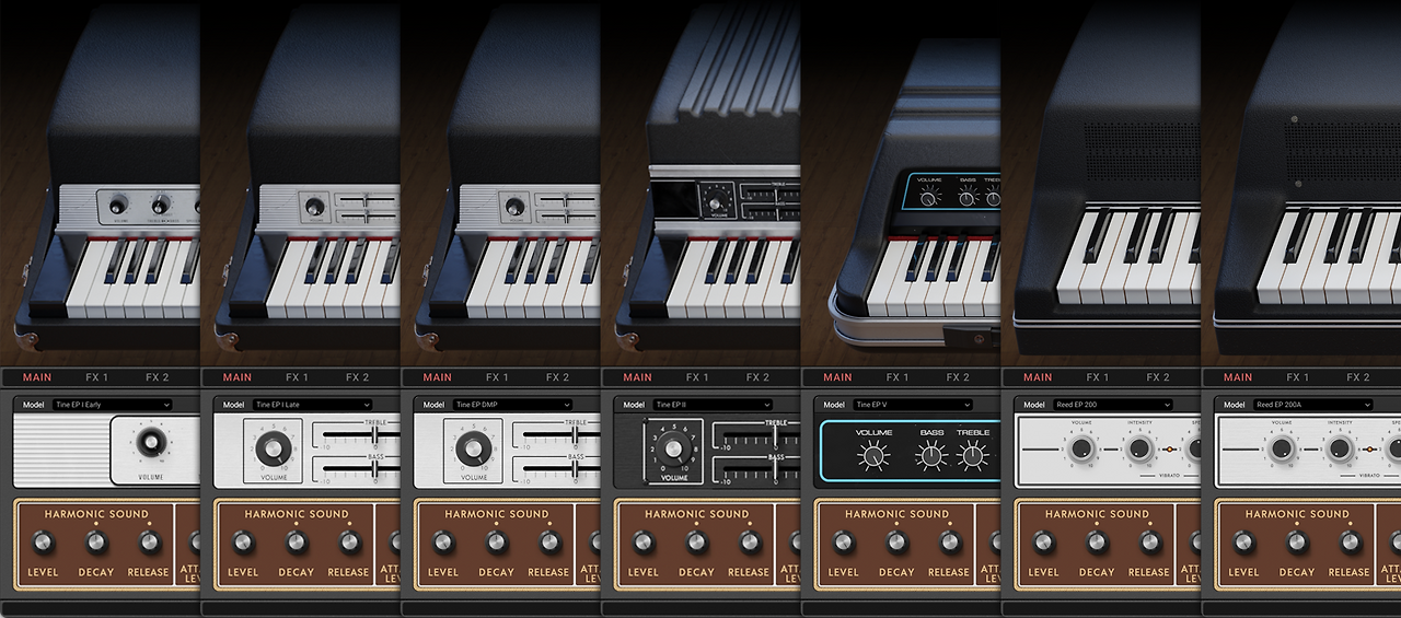 70년대와 80년대의 엄선된 클래식 빈티지 일렉트릭 피아노 모델 7가지(틴 타입, 리드 타입)를 재현합니다.