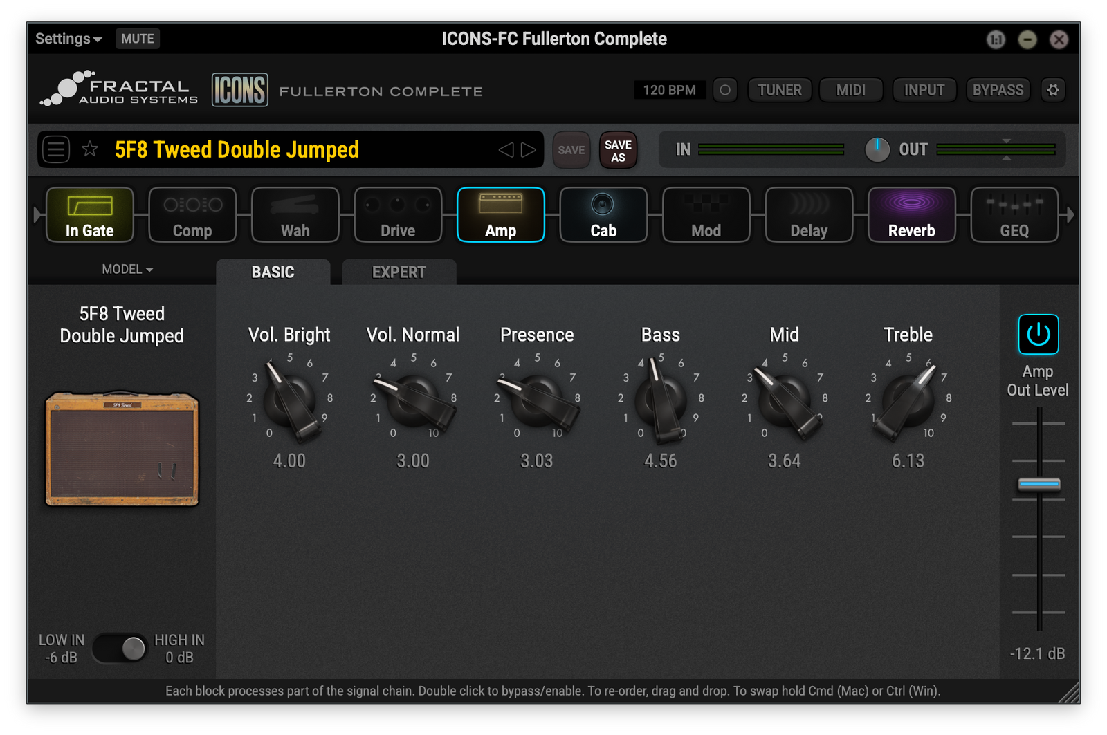Fender® Deluxe Reverb™의 Normal 채널을 기반으로 한 Deluxe Verb Normal입니다.