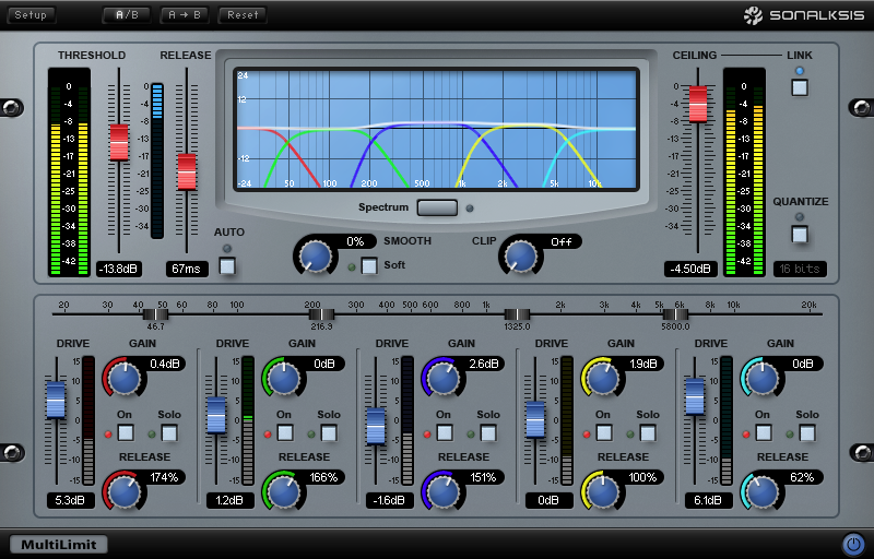 MultiLimit은 마스터링 리미팅의 절대적인 정점입니다. 가장 까다로운 사용자를 위한 우수한 프로세서로 전체 주파수 범위에서 믹스 다이내믹스의 균형을 재조정할 때 정밀한 제어가 가능합니다.