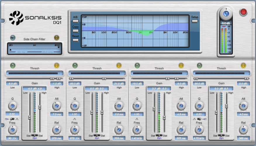 DQ1 다이내믹 이퀄라이저는 수상 경력에 빛나는 SV-517 EQ와 동일한 아날로그 EQ 회로를 기반으로 하지만 완전히 다이내믹하게 작동하므로 신호 레벨에 따라 필터가 '모핑'됩니다. 이러한 극도의 다용성 덕분에 DQ1은 정밀 조각에서 주변 개선 또는 복원에 이르는 작업에 적합합니다. DQ1은 모든 오디오 처리 도구 상자에 완전히 독특하고 없어서는 안될 추가 기능입니다.