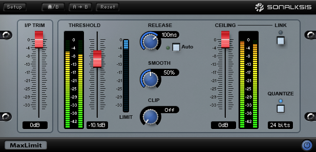 MaxLimit은 재료를 조금 더 밀어야 하지만 역동성을 손상시키지 않으면서 리미터를 최대화하는 프로그램입니다. 고유한 '스무딩' 기능을 통해 최대화와 투명도의 균형을 맞출 수 있습니다.