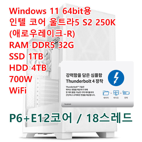 [판매중]인텔코어 울트라5 S2 250K(애로우레이크)/썬더볼트4/RAM 32GB/SSD 1TB/HDD 4TB/700W