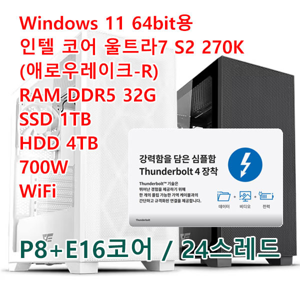 [판매중]인텔코어 울트라7 S2 270K(애로우레이크)/썬더볼트4/RAM 32GB/SSD 1TB/HDD 4TB/700W
