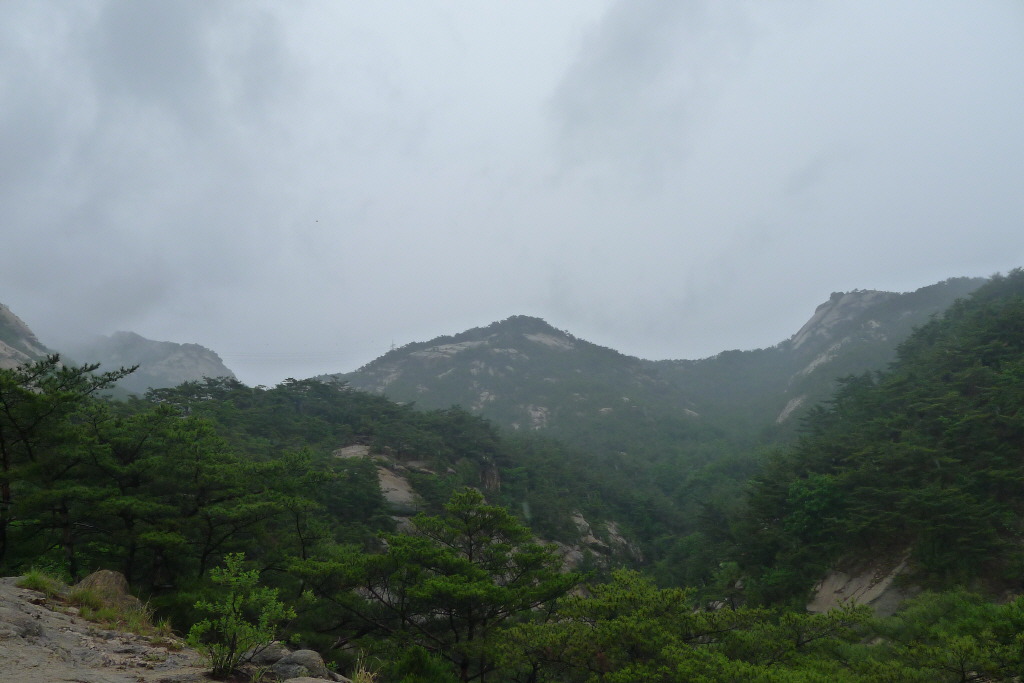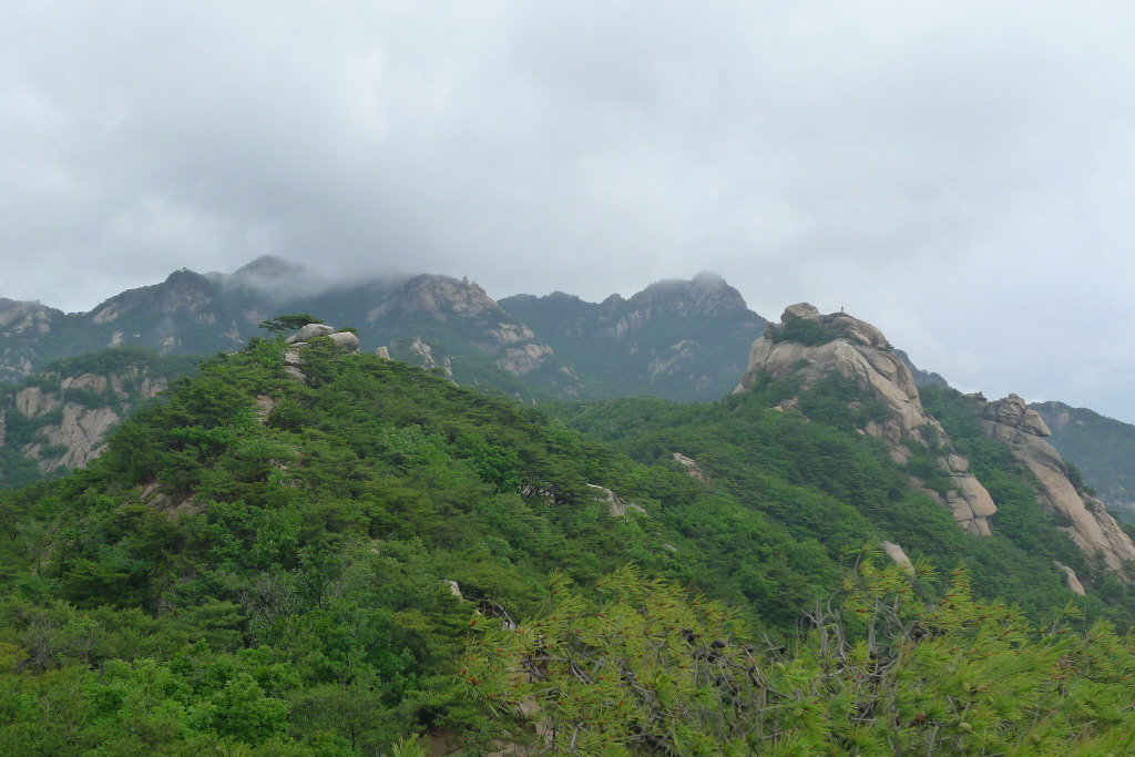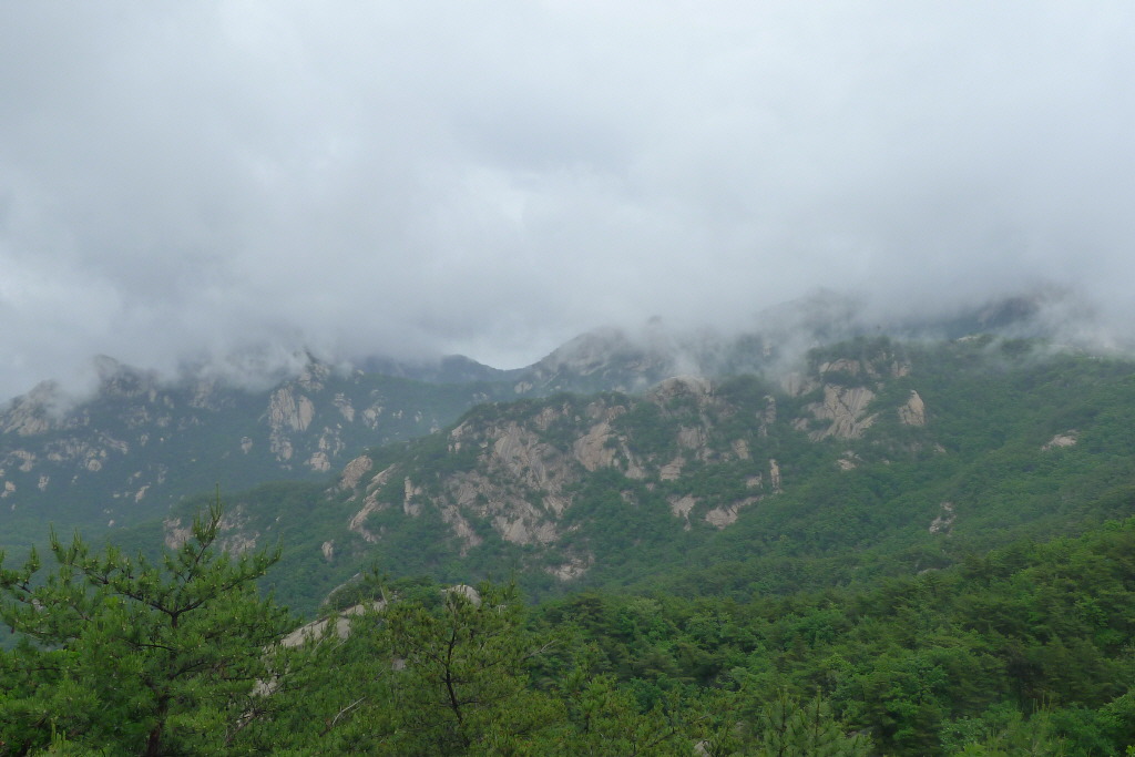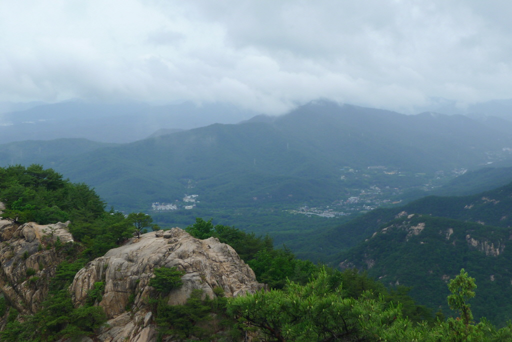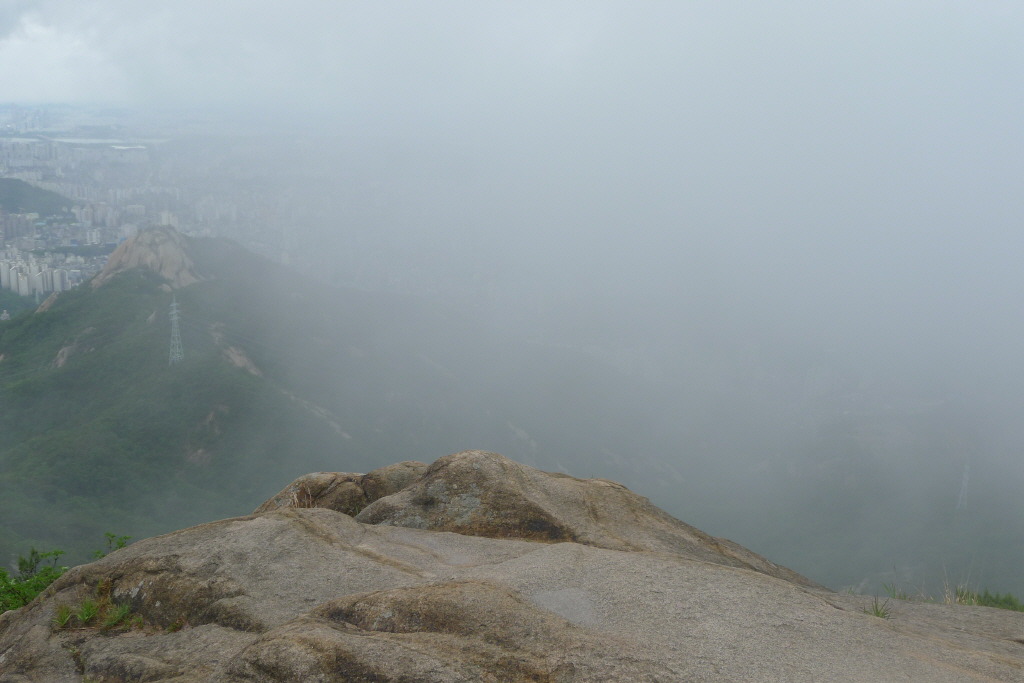 우측이 독바위이고..좌측 운무에 쌓여 까마득하게 보이는 봉우리가 향로봉입니다..독바위역에서 향로봉 코스는 약간 빡셈..