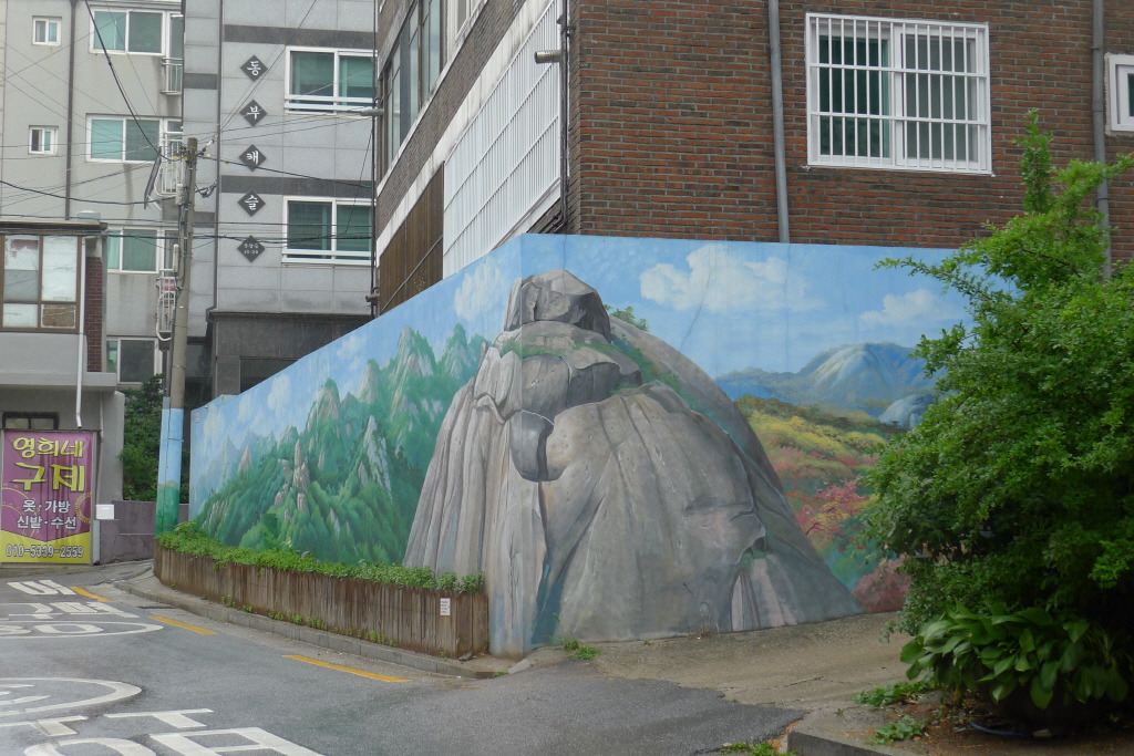 빌라 담벼락에 독바위를 근사하게 그렸네요..북한산 독바위가 지리산 독바위보다 실제로 훨 멋있답니다..^^