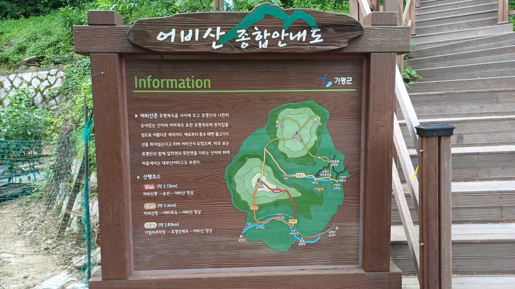 어비산장앞의 어비산 안내도. 유명산과 어비산을 연결하면 일타쌍피 산행인가요?