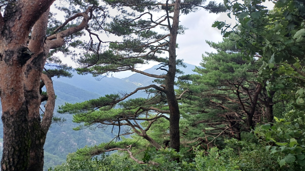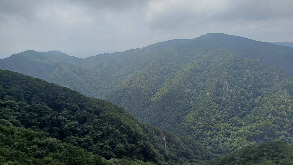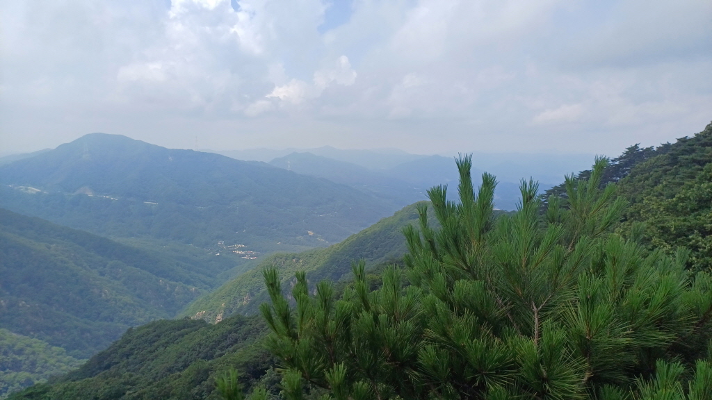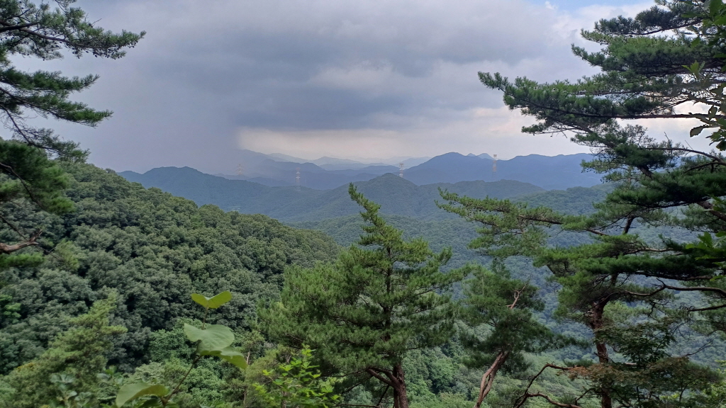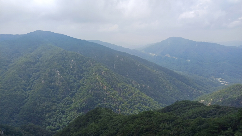 멀리 중미산 넘어 통방산, 곡달산, 고동산, 화야산도 흐릿하게 보입니다.