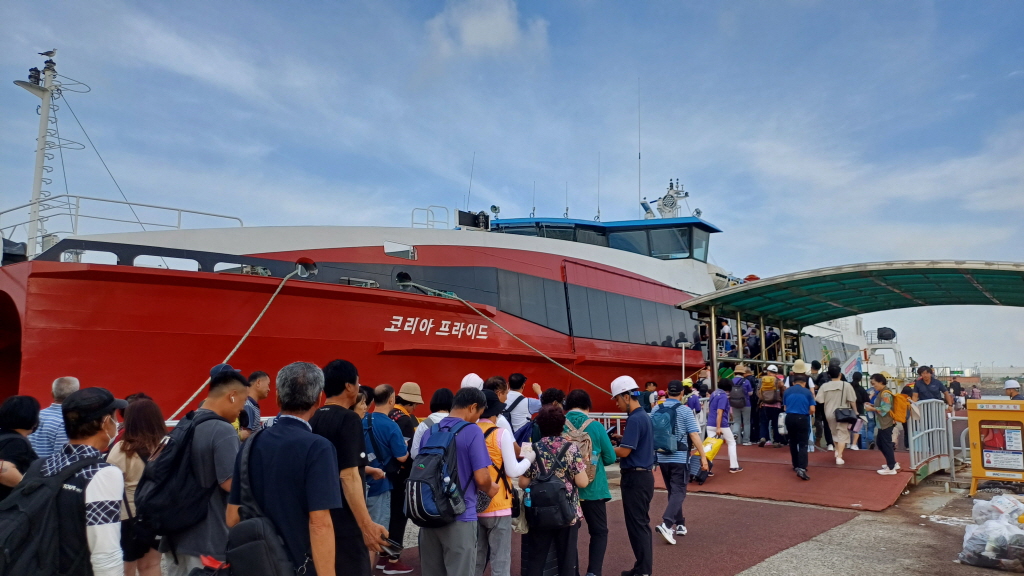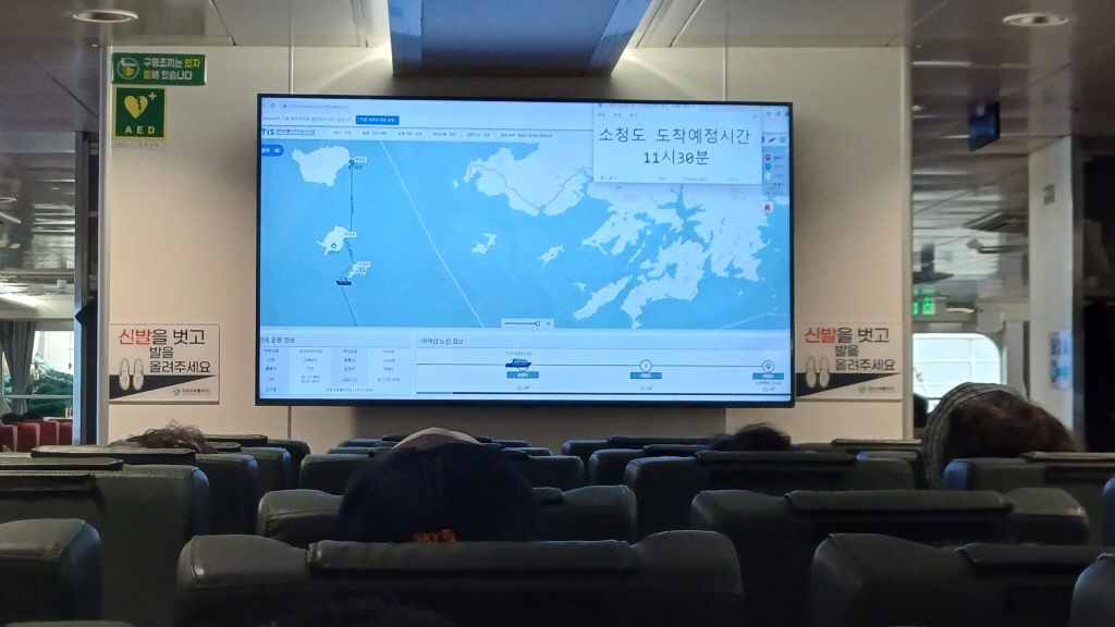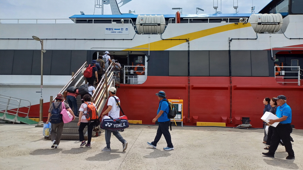 08:30발 소청도, 대청도를 경유하는 백령도행 코리아프라이드 쾌속선 선박에 신분증 제시와 승차권 QR코드를 스캔하고 탑승합니다.