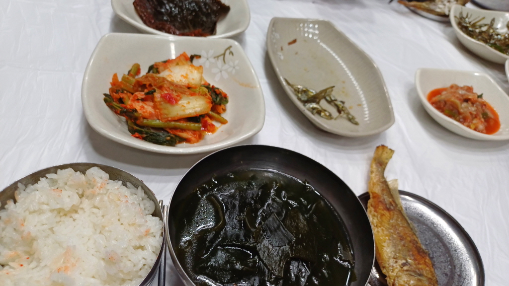 반찬이 깔끔하고 맛있습니다. 시원한 미역국에 속풀이 합니다. 애즈산은 원래 미역국을 좋아합니다. 그래도 시험보면 미끄러진적은 없습니다.