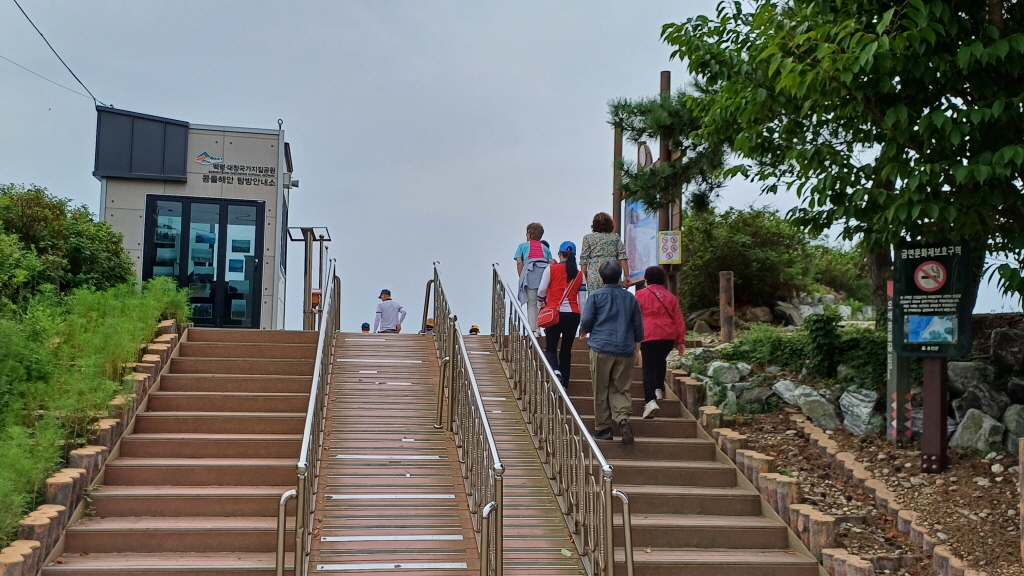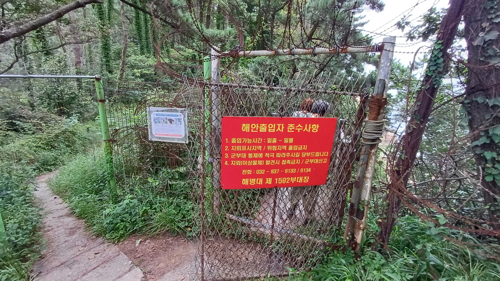 백령대청지질공원의 용기포 등대해변 가는 길. 출입가능 시간은 일출부터 일몰.