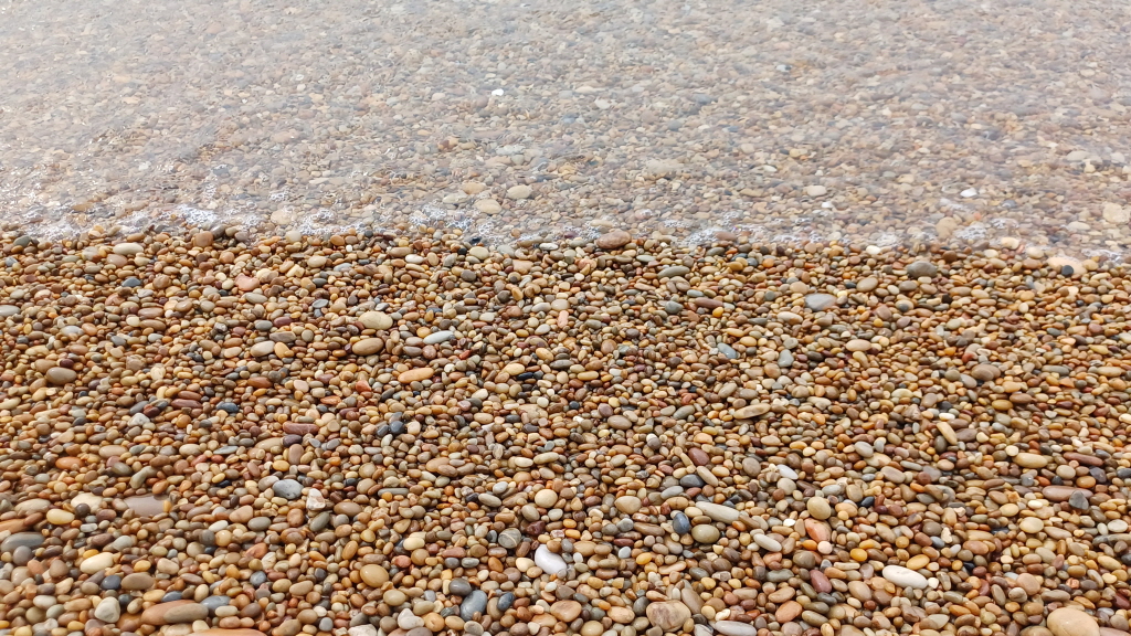 억겁의 세월이 흐르면서 생성된 형형색색의 조그만하고 고운 작은 모양의 콩알만한 자갈들이 무수히 많습니다.