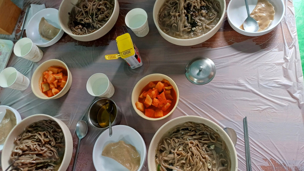 고소한 들기름을 넣고 먹으니 메밀 칼국수가 맛이 일품입니다. 육지에서 멀고 먼 백령도라 막걸리 가격이 착하지 않네요. 1병에 5,000원! 입니다.