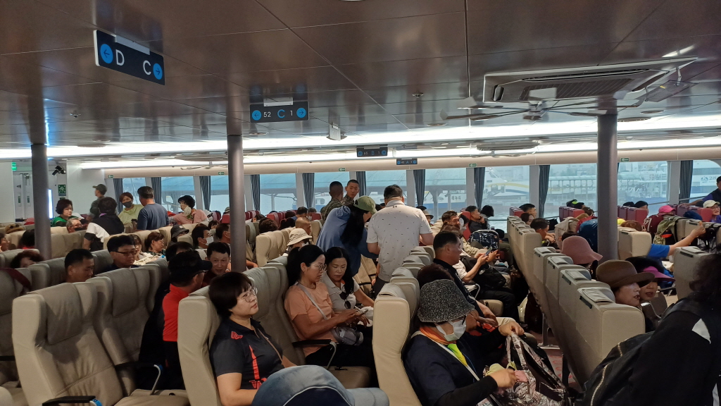 여객선 내부 모습. 편안하게 이동이 가능하며 매점도 운영되어 캔맥주를 즐기며 지루한 뱃시간을 즐겁게 보낼수 있습니다.