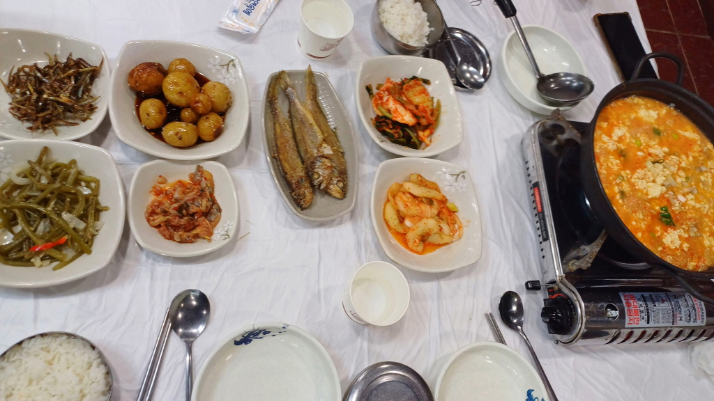 백령도에서의 첫 점심식사. 처음 먹어본 멸치와 비슷한 까나리 볶음이 아주 맛이 있었습니다.