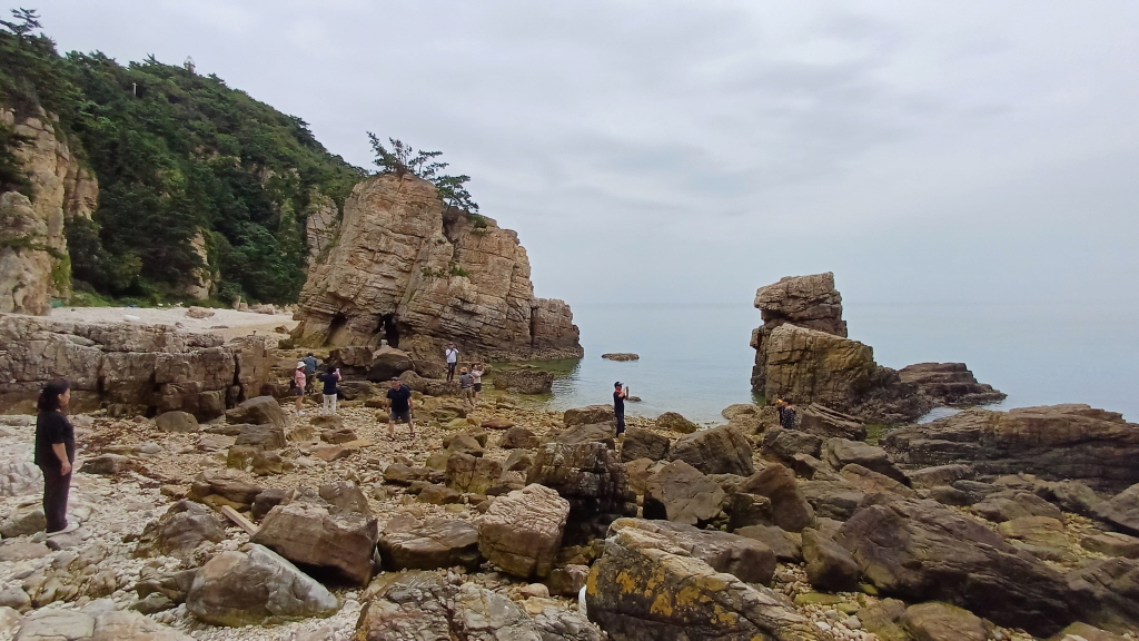 두무진과 규모의 비교가 불가하나 아기자기한 용기포 등대 해변입니다. 변산의 격포리 해안 채석강과 적벽강을 보신다고 생각하면 됩니다. 요기서 해삼, 멍개 장사하는 사람없나요? 쏘주 한잔하면 죽여 주겠는데요.