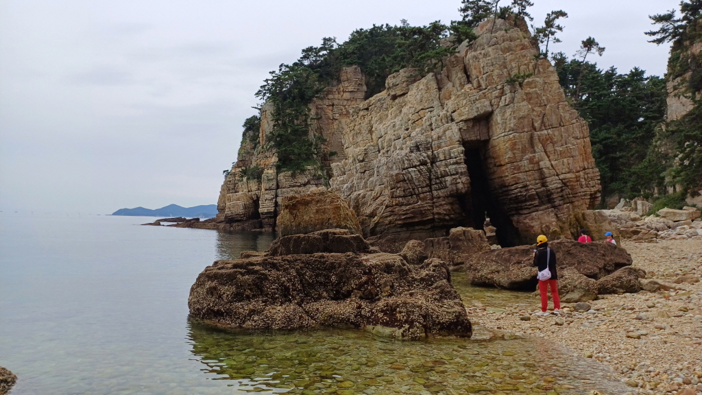 오랫동안 바닷물의 침식작용으로 생성된 해식동굴도 보이고..