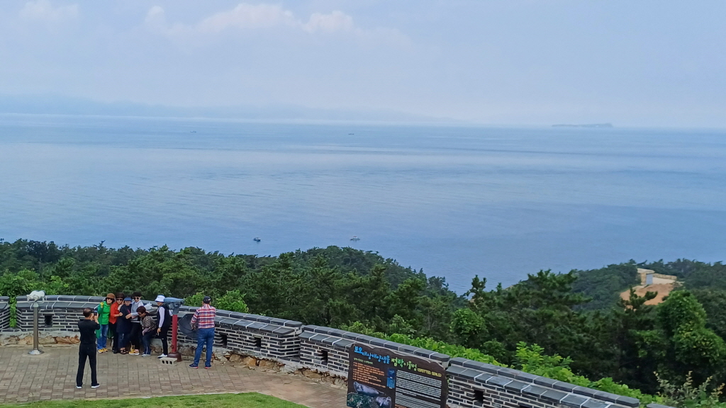 심청각에서 바라 본 바다 멀리 갈수없는 북녘의 산하. 직선거리로 17km가 된다고 합니다. 우측에 보이는 섬이 북한 월매도입니다.