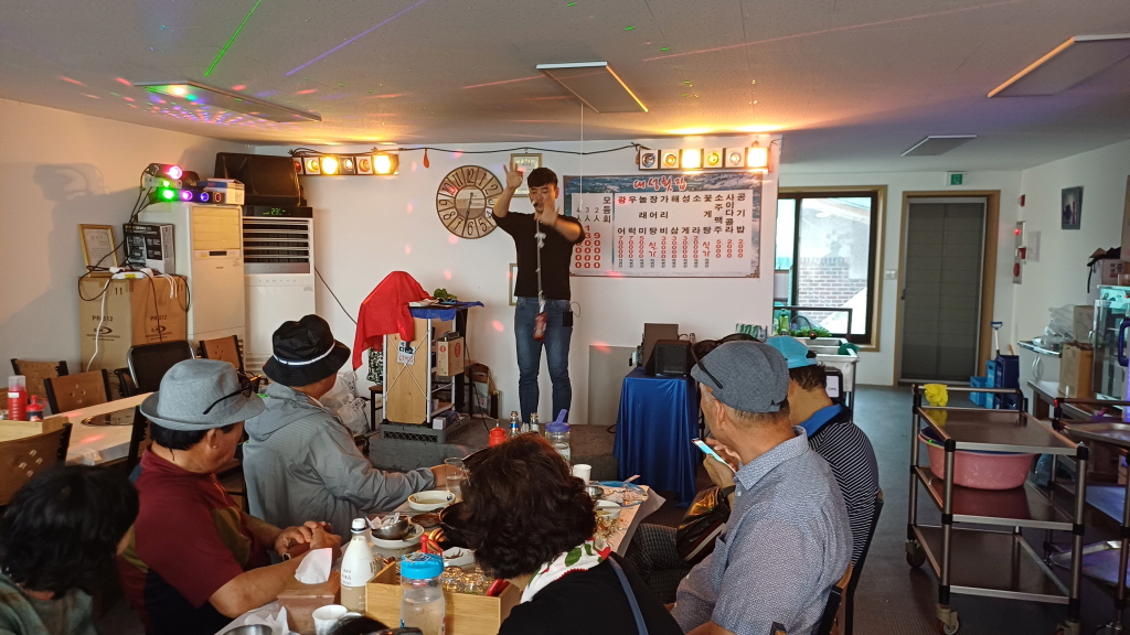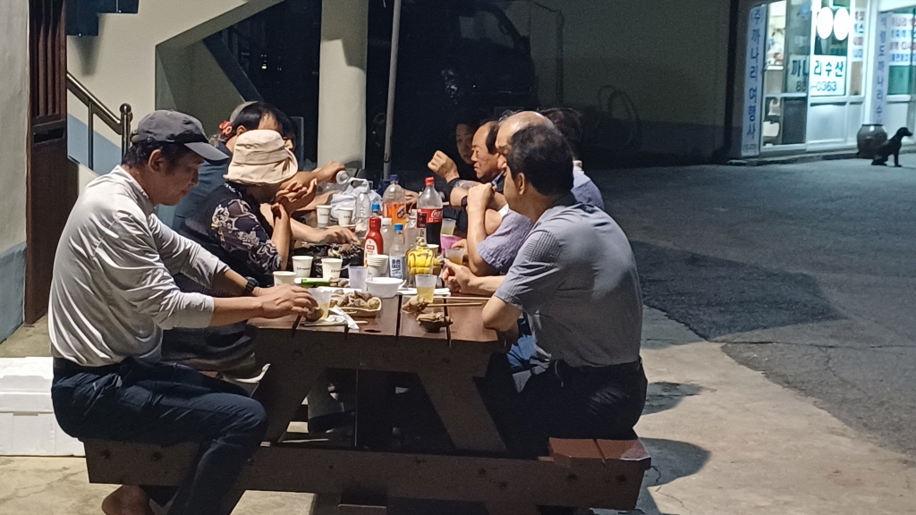 오늘 일정을 함께한 12명의 이분들은 멀리 거제도에서 오셨는데 내일 아침 대청도로 나간다합니다. 전임 도지사, 시장님 등이 계셨는데 이분들이 권하는 양주와 소라도 맛보았습니다.