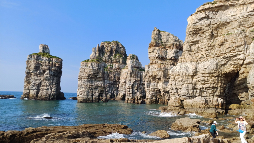 두무진은 백령대청 지질공원에 속하며 오랜 세월동안 바람과 파도에 만들어진 기기묘묘한 모습들이 경탄을 자아내게 합니다.