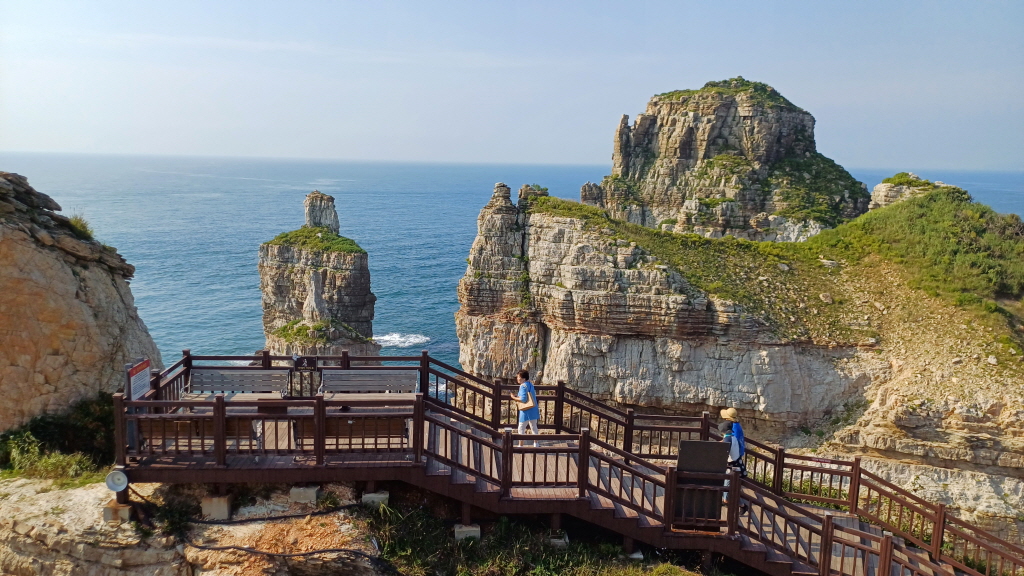 두무진 산책로가 잘 꾸며진 두무진 비경길. 멀리서 바라보면 거대하고 뾰족한 바위들의 생긴 모습이 머리를 맞대고 회의하는 모습같다고하여 두무진이라 불리웁니다.