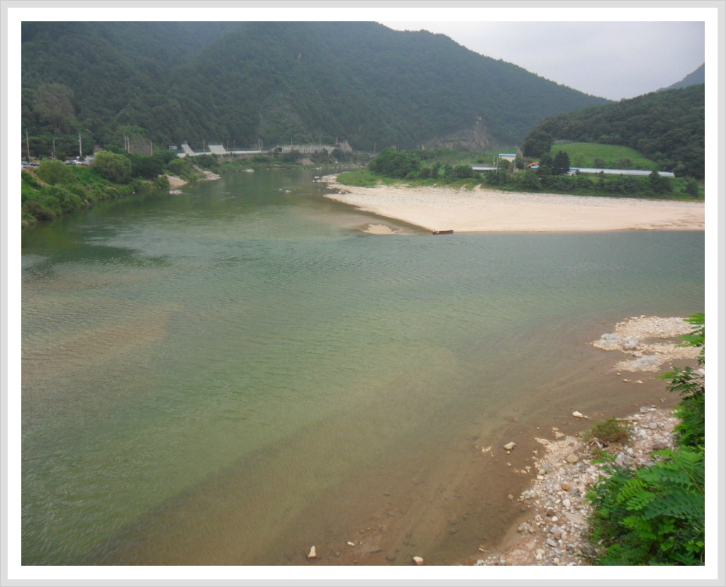 여기가 유명한 인제 합강(좌측은 내린천 현리방향 우측 홍천)