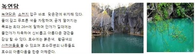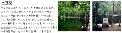 ▶녹연담 맞은편에 위치해 있는 천지를 닮은 작은 연못 [소천지 *지하산림 이도백하로 이동(약 30분~) 호텔투숙 및 휴식 | 조:호텔식 중:현지식 석:불고기 | |||||