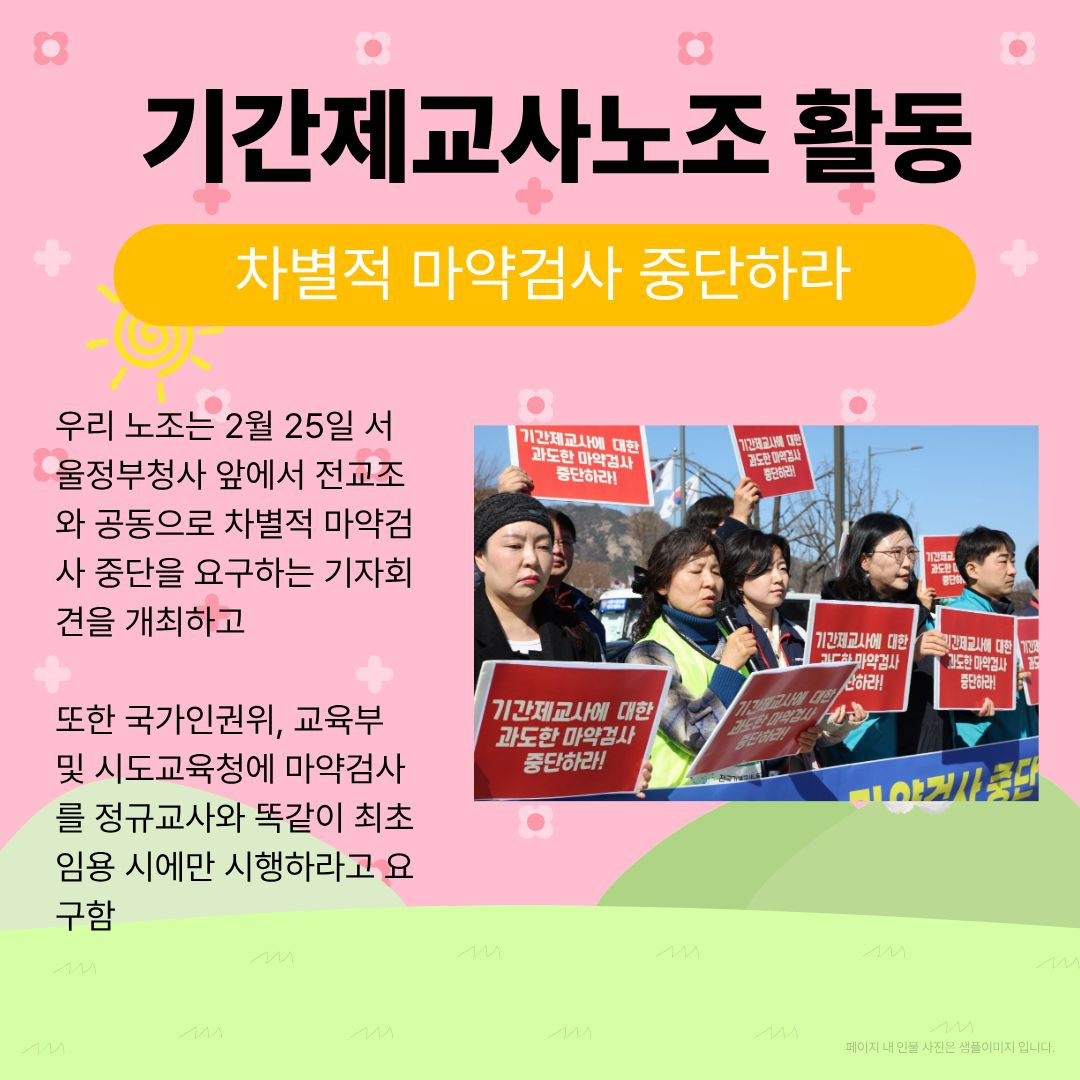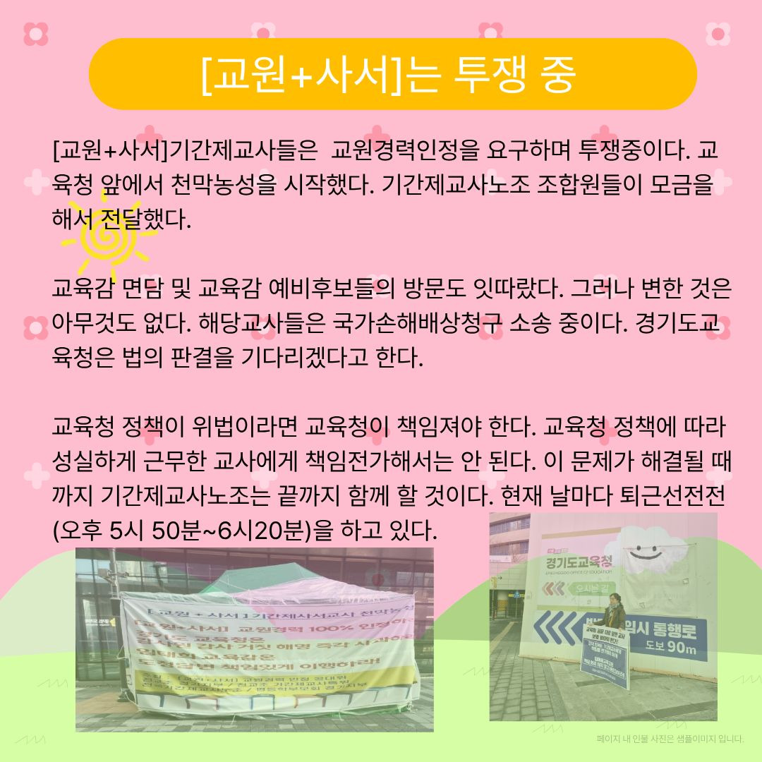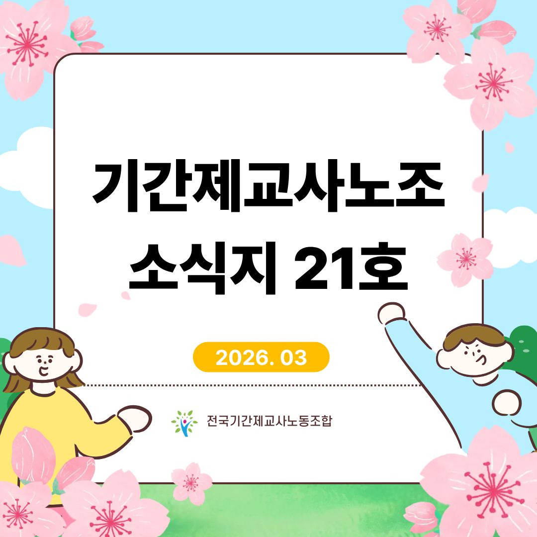 소식지21 (2026년 3월) 작성자by1221|작성시간26.03.19|조회수133 목록 댓글 2 글자크기 작게가 글자크기 크게가 3월 20일 수정본입니다. 이전 파일에 일부 급여사항(정근수당추가가산금,교원연구비)가 수정되었으므로 이점 양해바랍니다. 다음검색 현재 게시글 추가 기능 열기 북마크 신고 센터로 신고 댓글 댓글 2 댓글쓰기 답글쓰기 댓글 리스트 작성자노조위원장 | 작성시간 26.03.19 급여항목에서 정근수당 추가가산금이 빠졌고, 교원연구비의 금액이 잘못되었음을 알려드립니다. 내일 수정해서 보완하도록 하겠습니다. 올바른 내용은 필독으로 전체 공지한 내용을 보시면 확인하실 수 있습니다. 작성자에스텔 | 작성시간 26.03.20 항상 고생이 많으십니다. 방금 에듀파인으로 읽었습니다. 댓글 전체보기